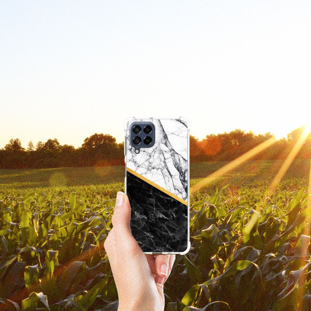 Samsung Galaxy M53 Anti-Shock Hoesje Marmer Wit Zwart - Origineel Cadeau Man