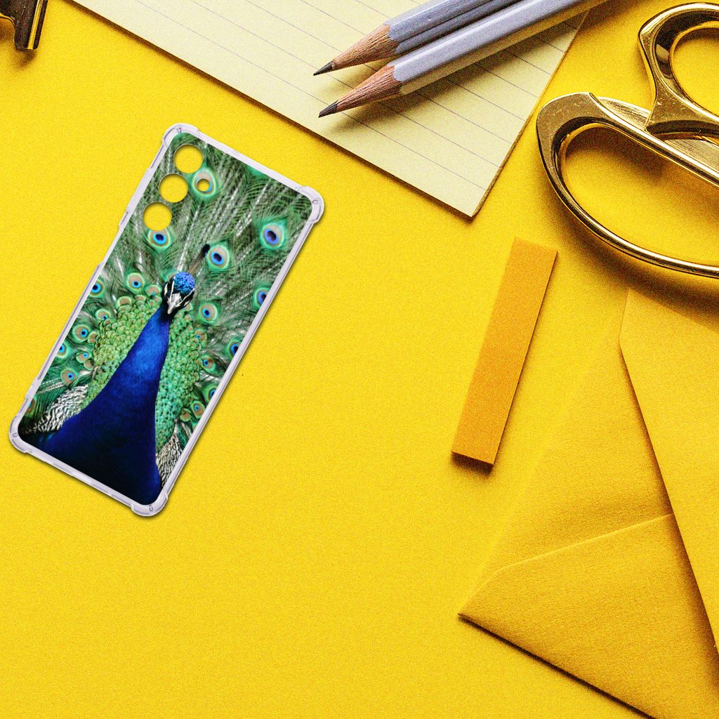Samsung Galaxy M54 Telefoonhoesje met Pasjes Pauw met Bloemen