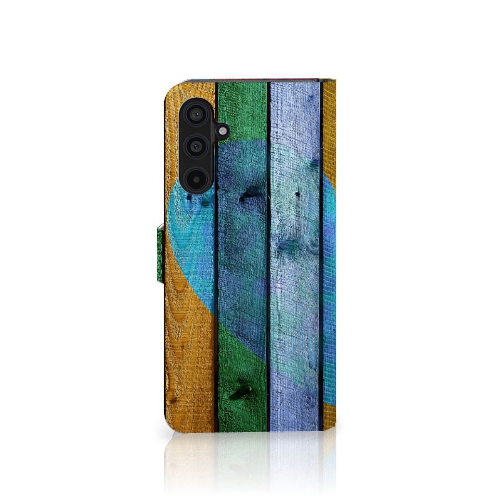 Samsung Galaxy M54 Book Style Case Wood Heart - Cadeau voor je Vriend