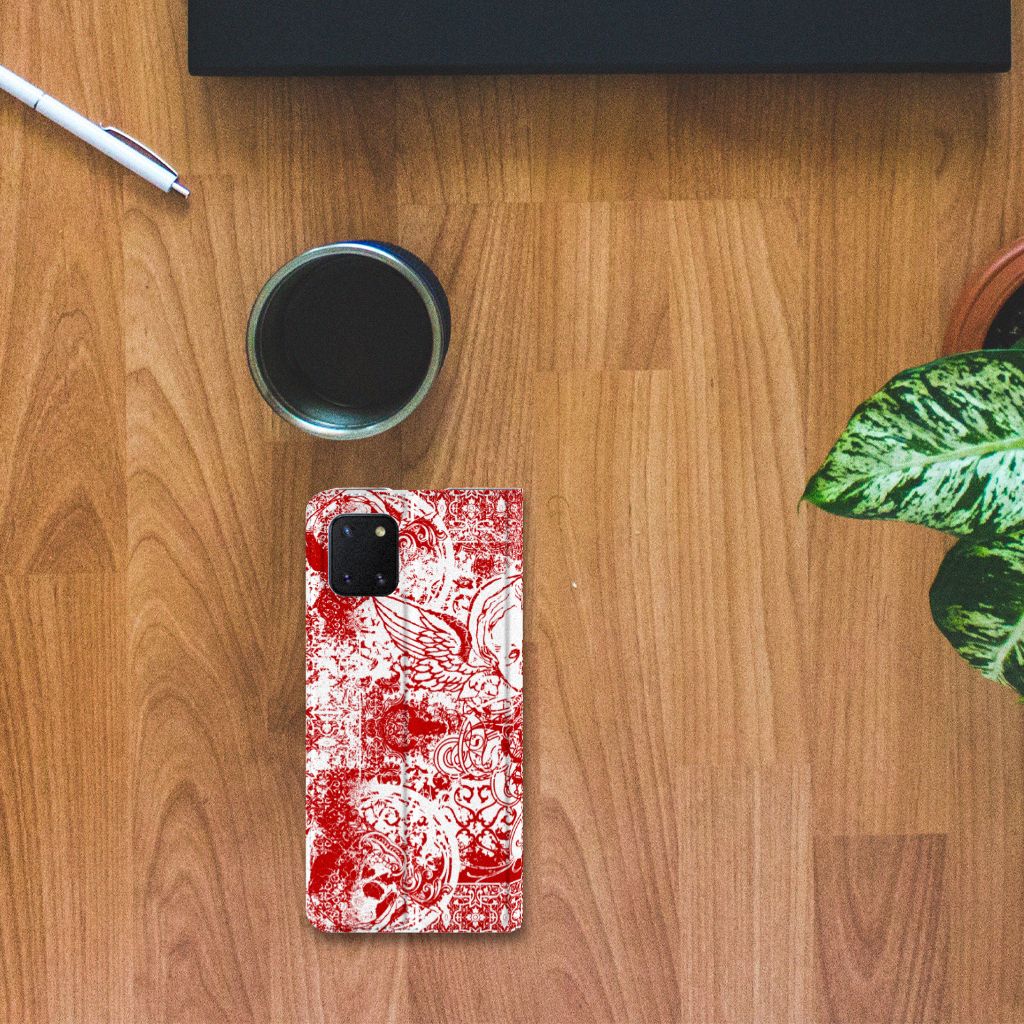 Mobiel BookCase Samsung Galaxy Note 10 Lite Angel Skull Rood