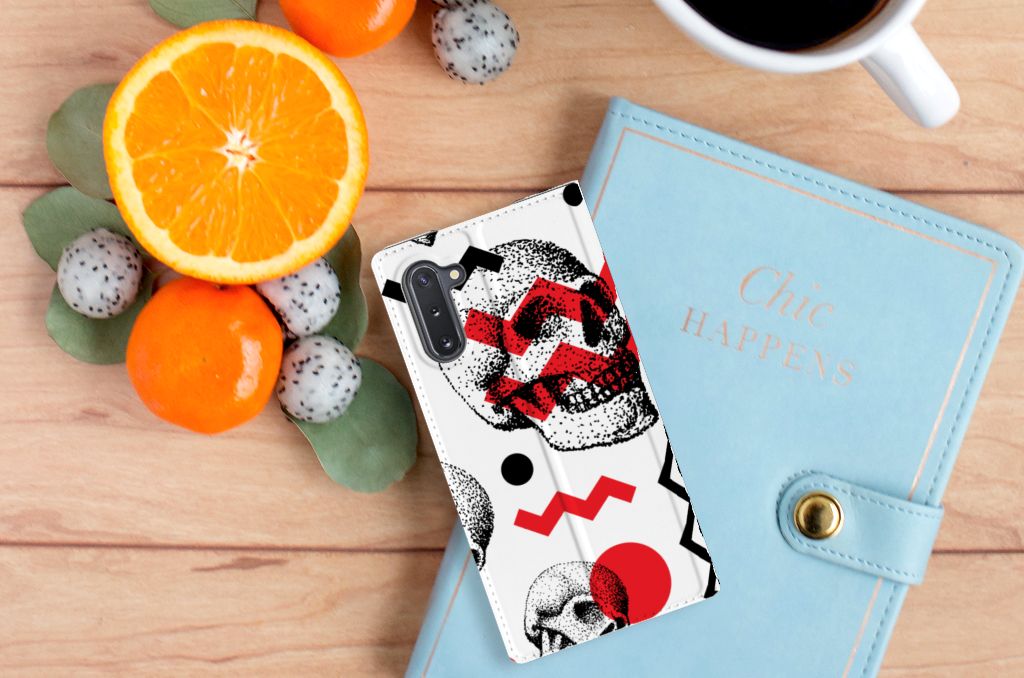 Mobiel BookCase Samsung Galaxy Note 10 Skull Red