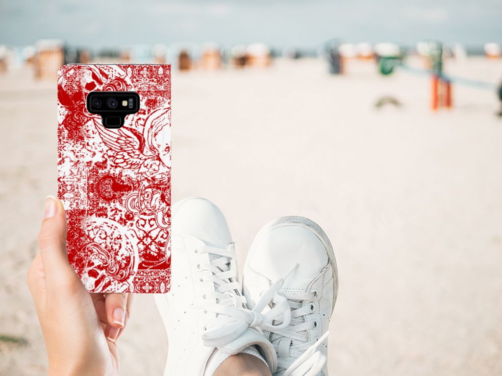 Mobiel BookCase Samsung Galaxy Note 9 Angel Skull Rood