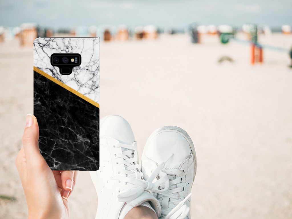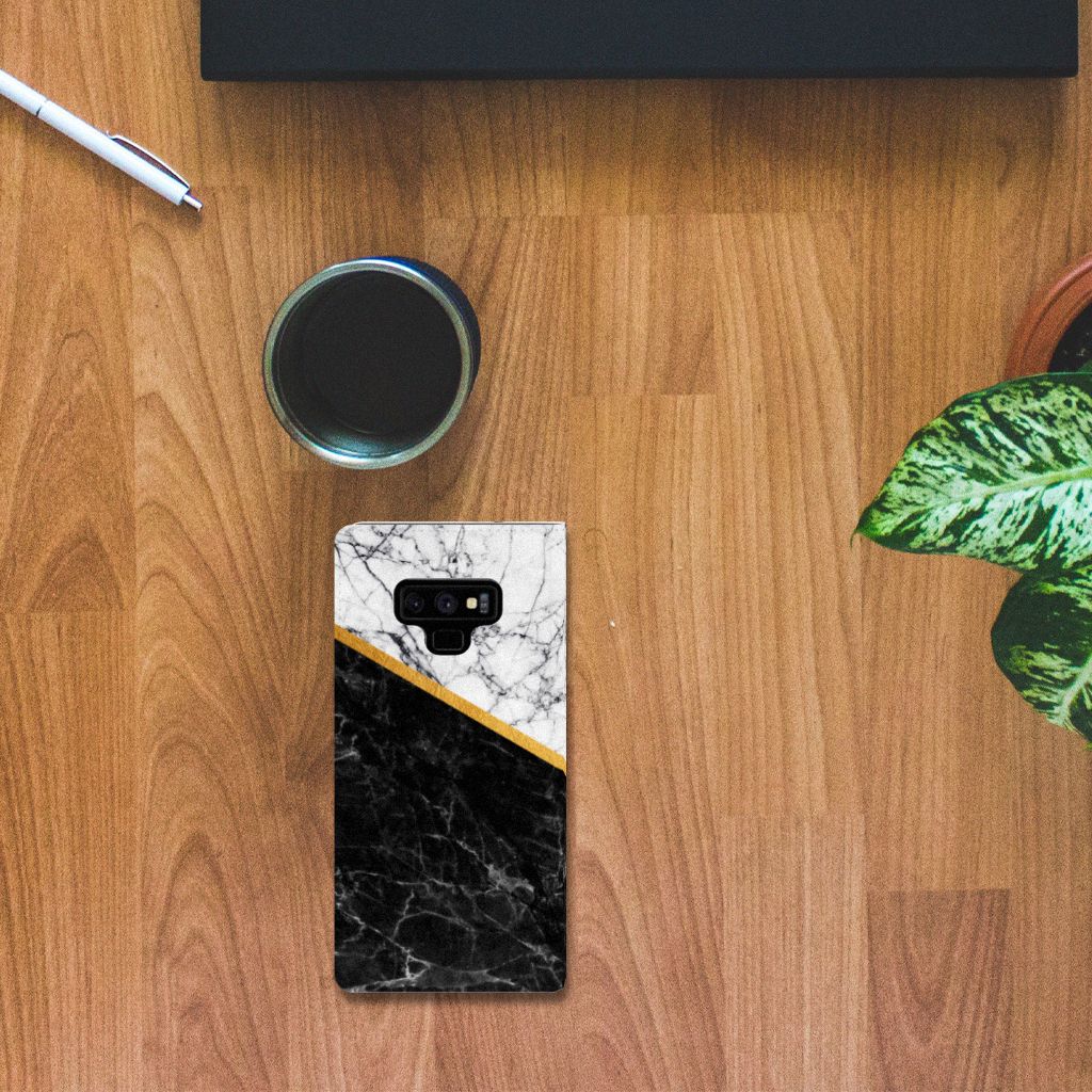Samsung Galaxy Note 9 Standcase Marmer Wit Zwart - Origineel Cadeau Man