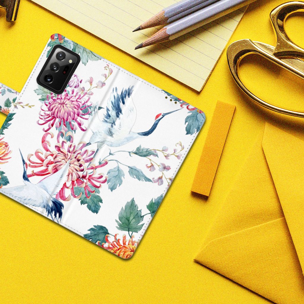 Samsung Galaxy Note20 Ultra Telefoonhoesje met Pasjes Bird Flowers