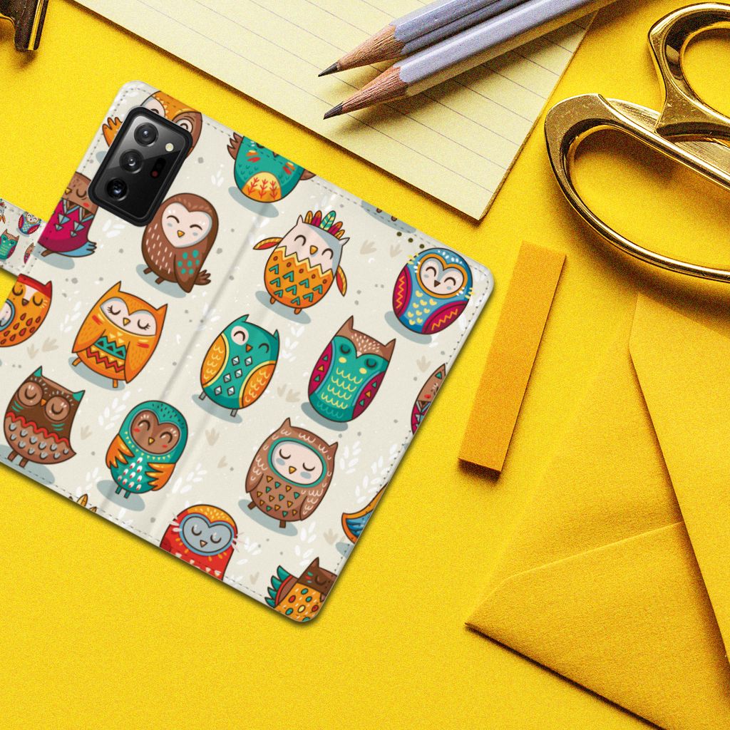 Samsung Galaxy Note20 Ultra Telefoonhoesje met Pasjes Vrolijke Uilen