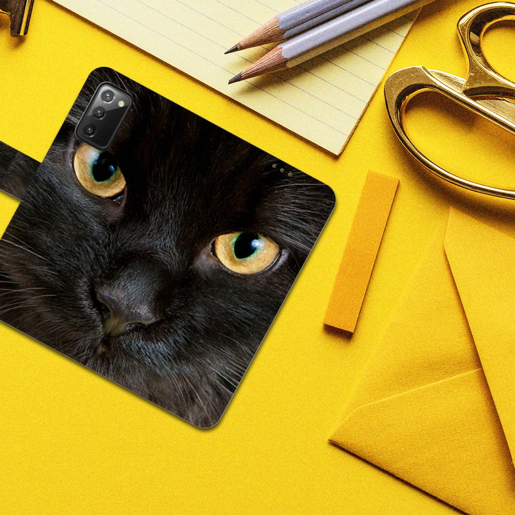 Samsung Galaxy Note 20 Telefoonhoesje met Pasjes Zwarte Kat