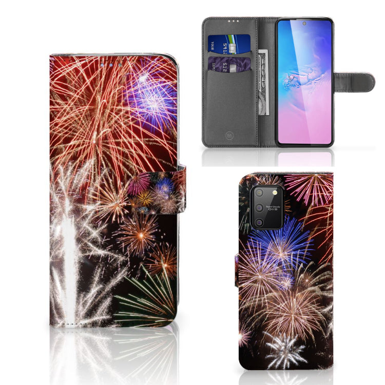 Samsung S10 Lite Wallet Case met Pasjes Vuurwerk