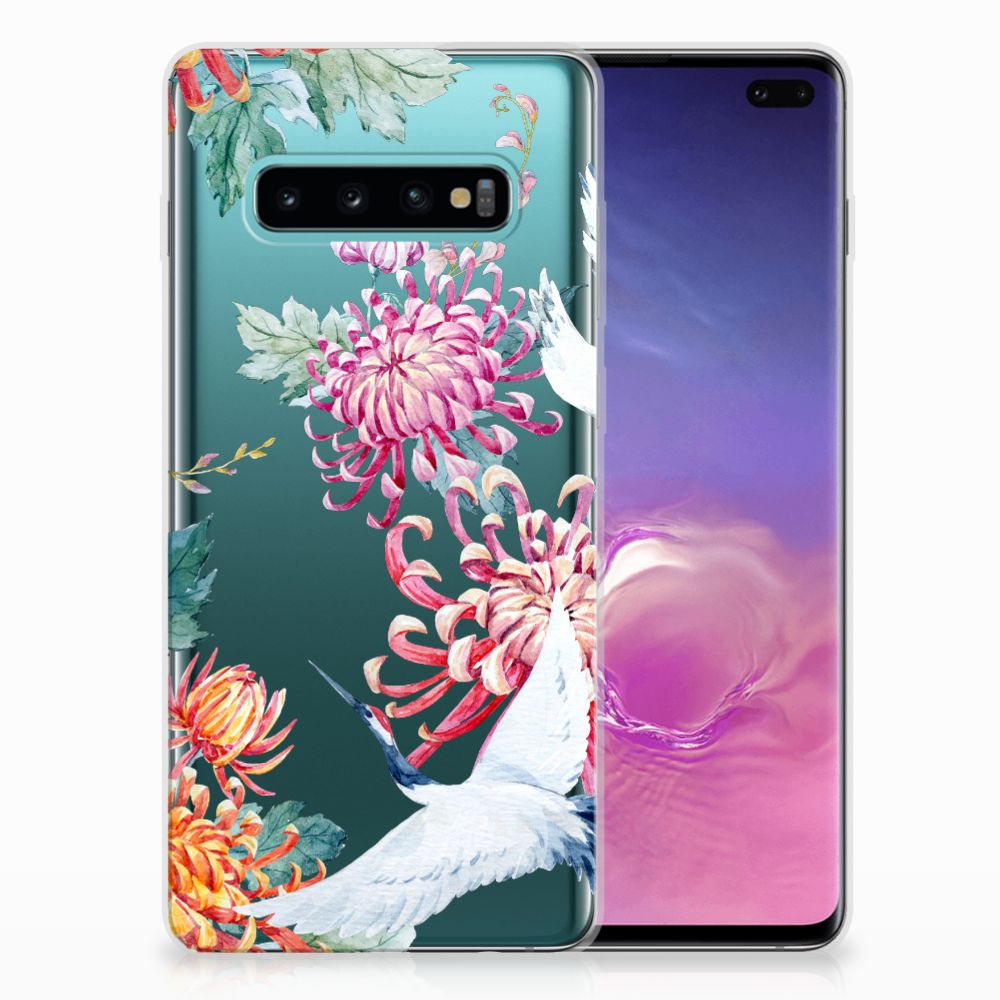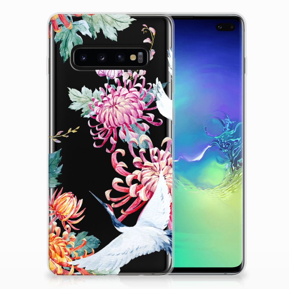 Samsung Galaxy S10 Plus TPU Hoesje Bird Flowers