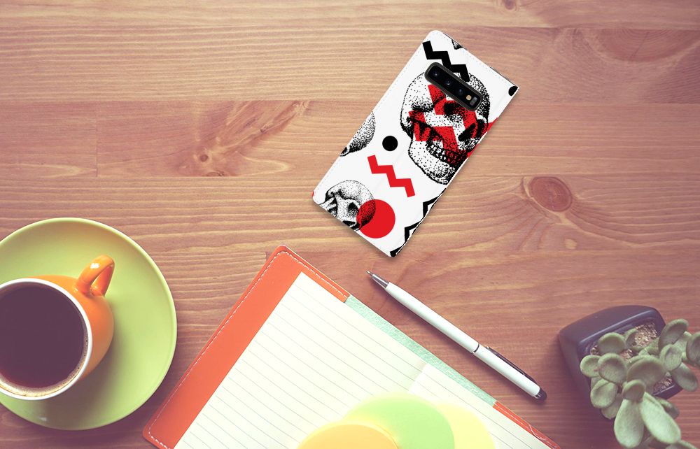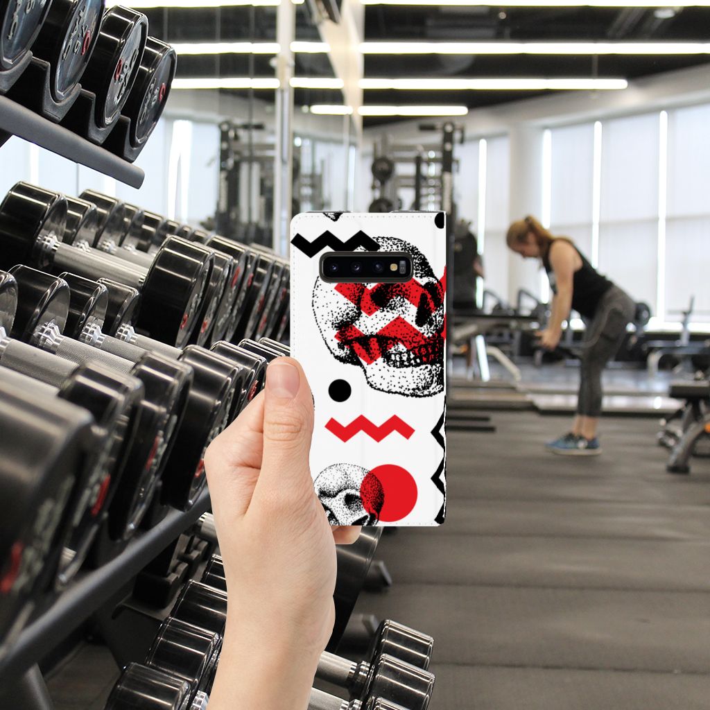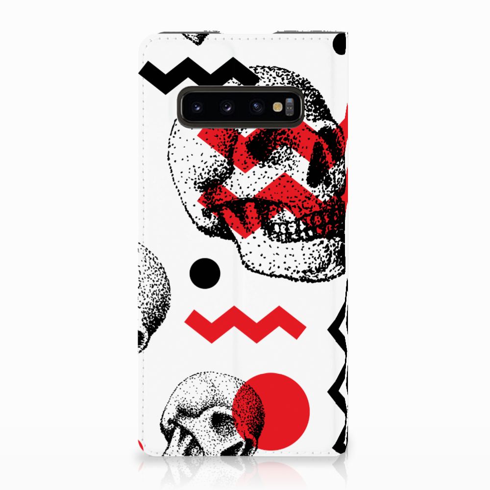 Mobiel BookCase Samsung Galaxy S10 Plus Skull Red