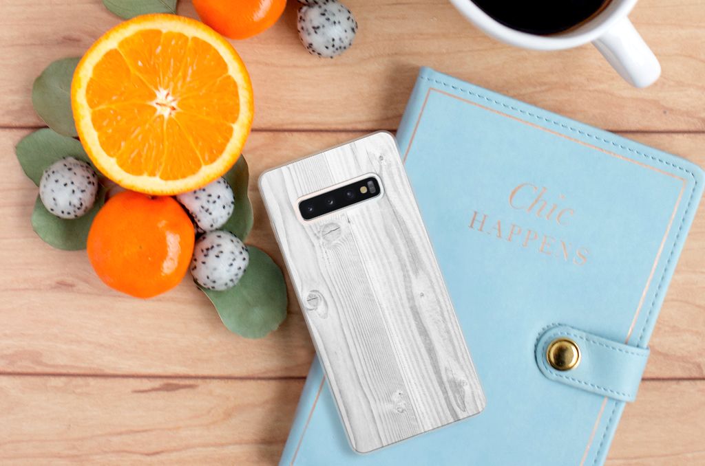 Samsung Galaxy S10 Plus Bumper Hoesje White Wood