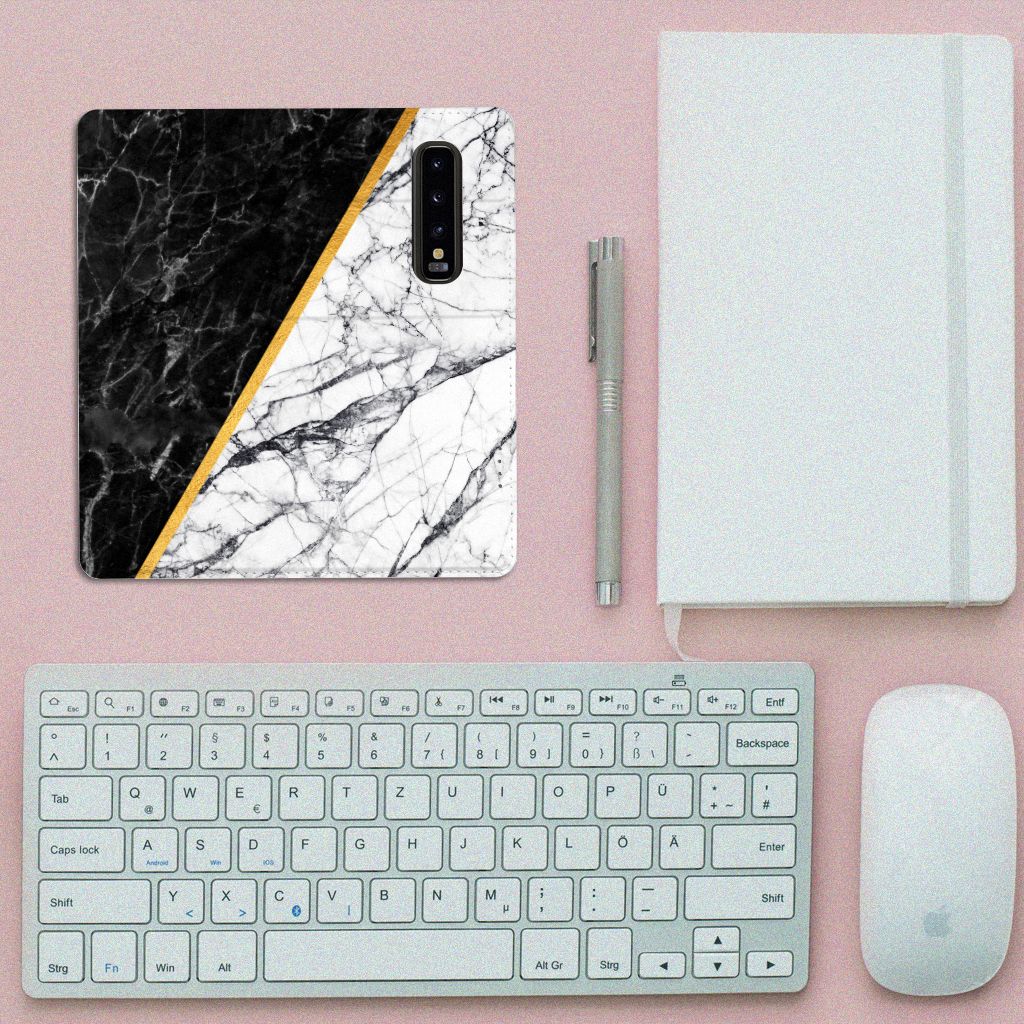 Samsung Galaxy S10 Standcase Marmer Wit Zwart - Origineel Cadeau Man