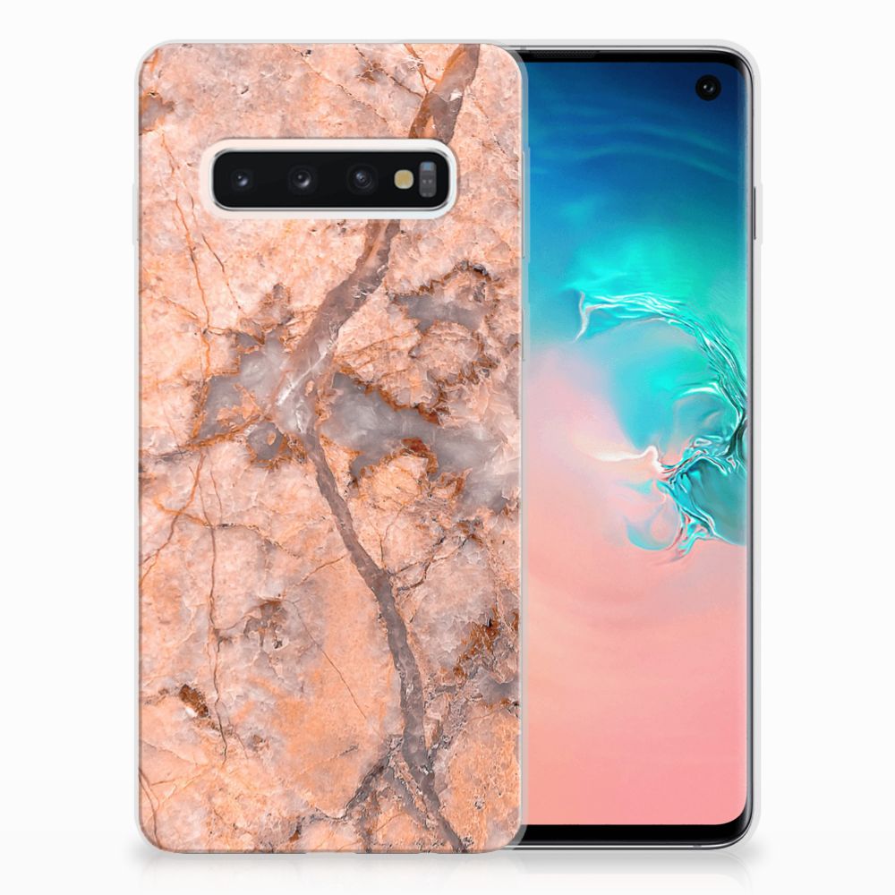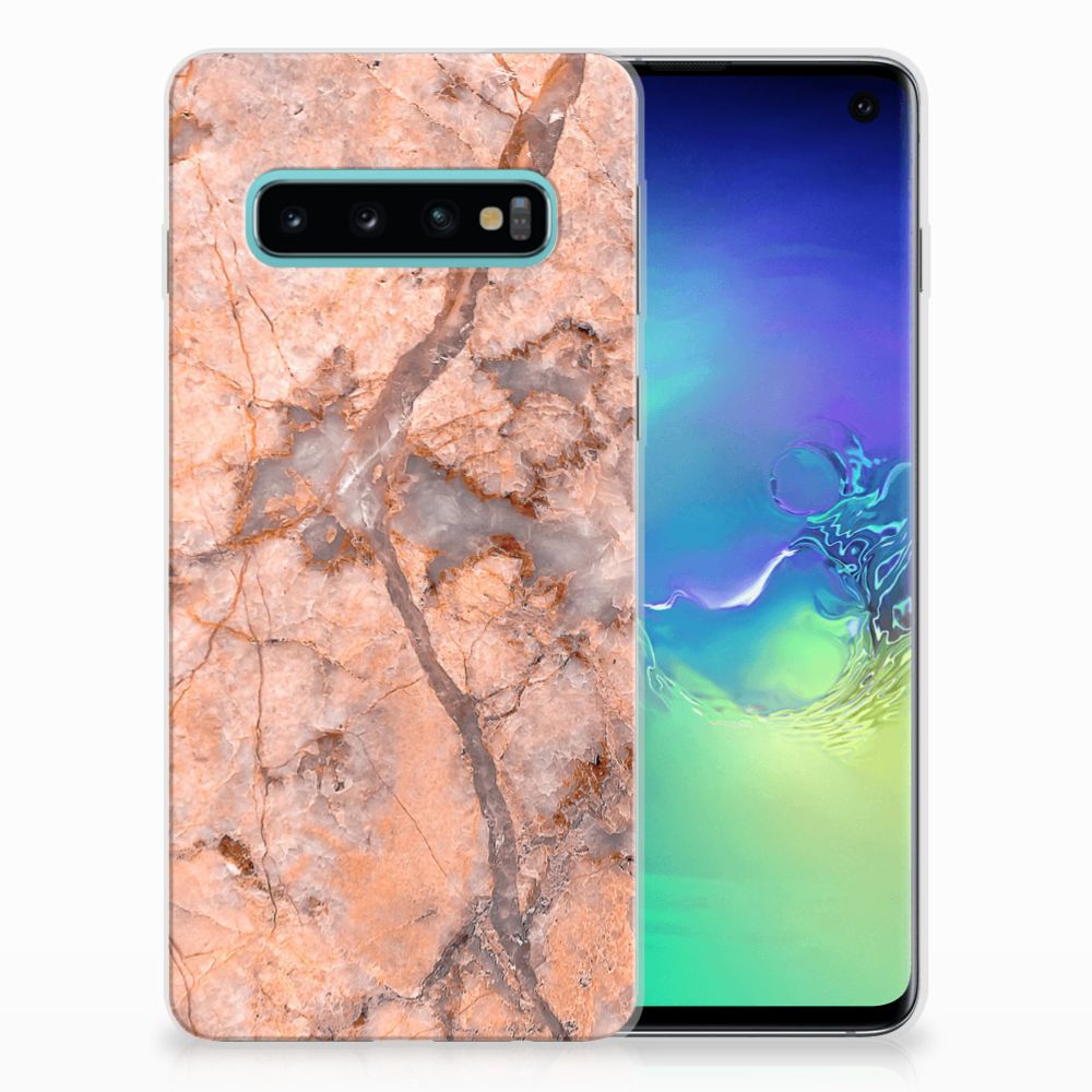 Samsung Galaxy S10 TPU Siliconen Hoesje Marmer Oranje