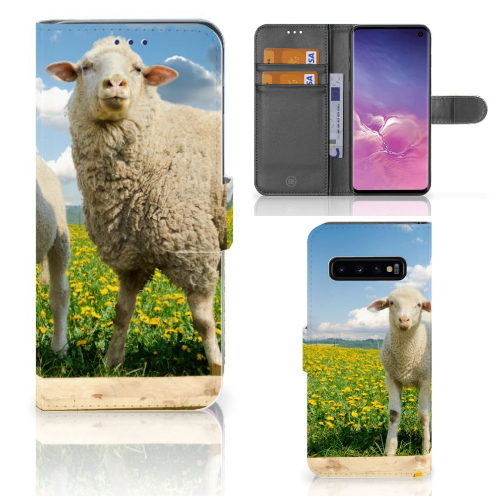 Samsung Galaxy S10 Telefoonhoesje met Pasjes Schaap en Lammetje