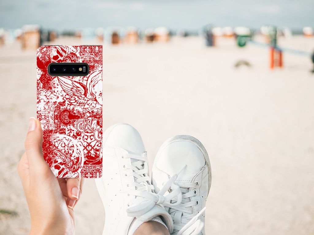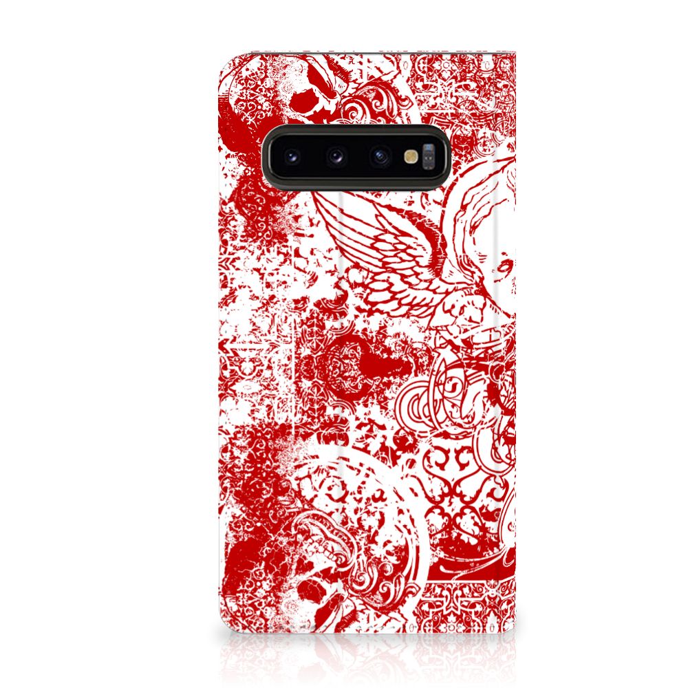 Mobiel BookCase Samsung Galaxy S10 Angel Skull Rood