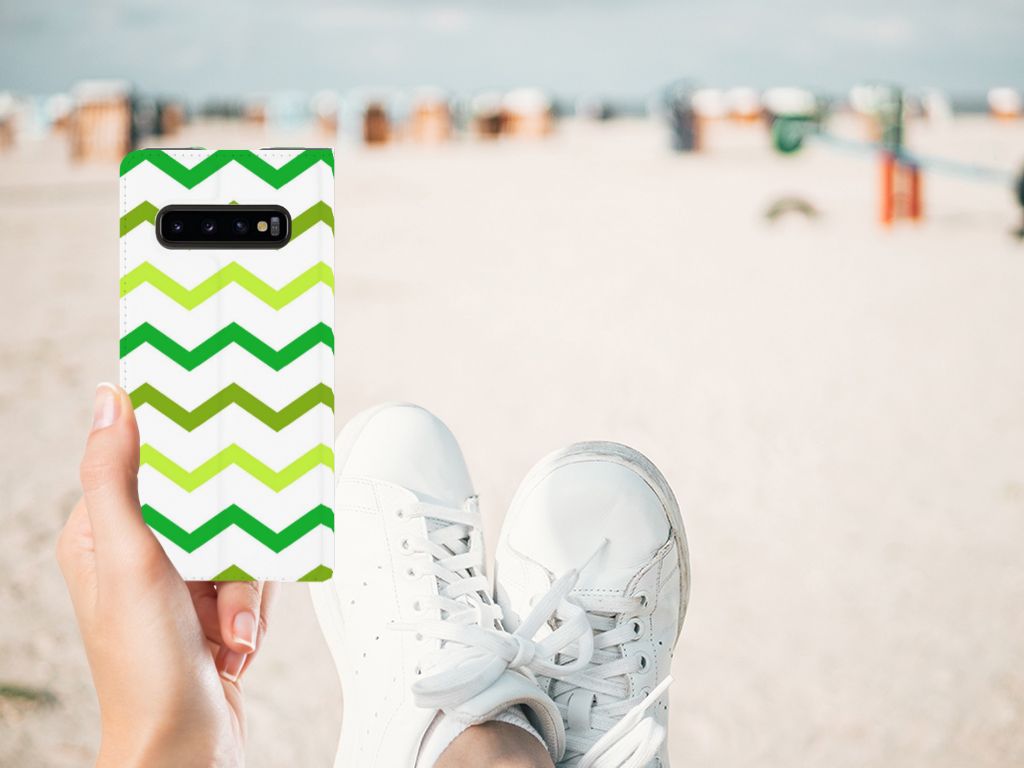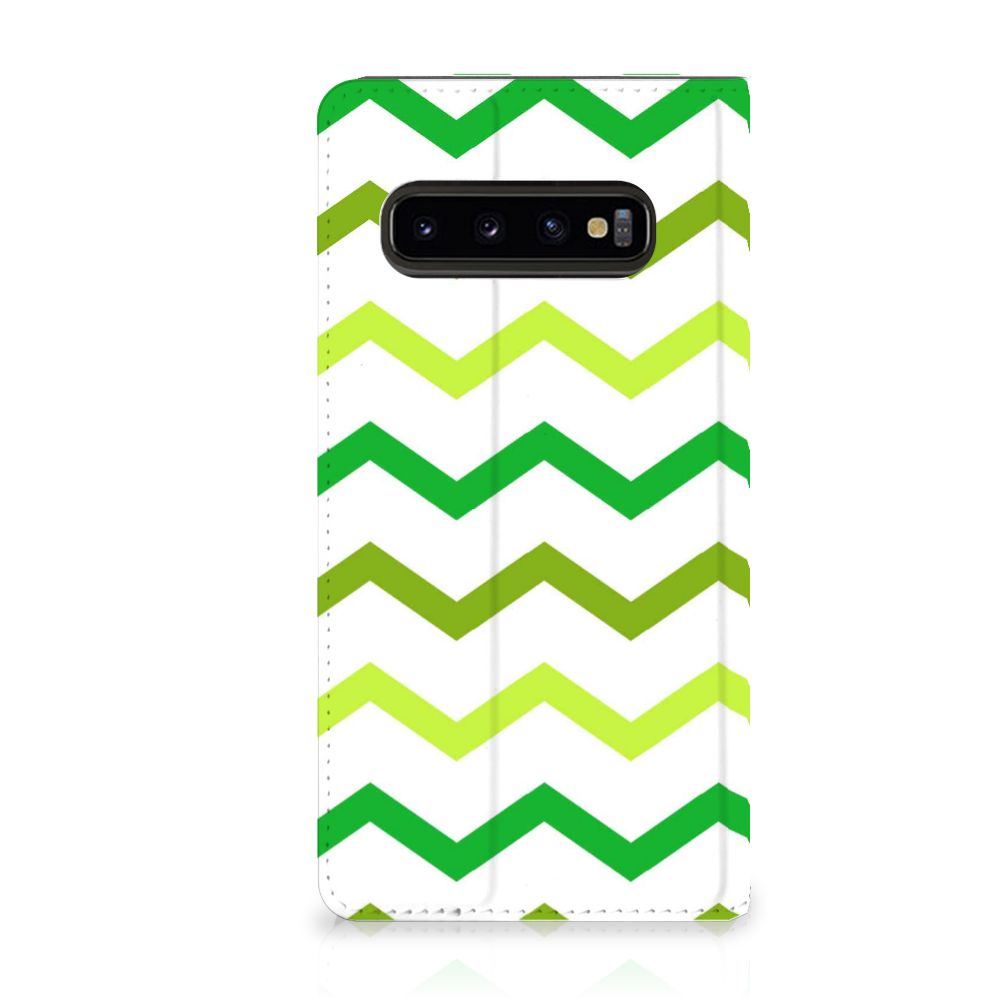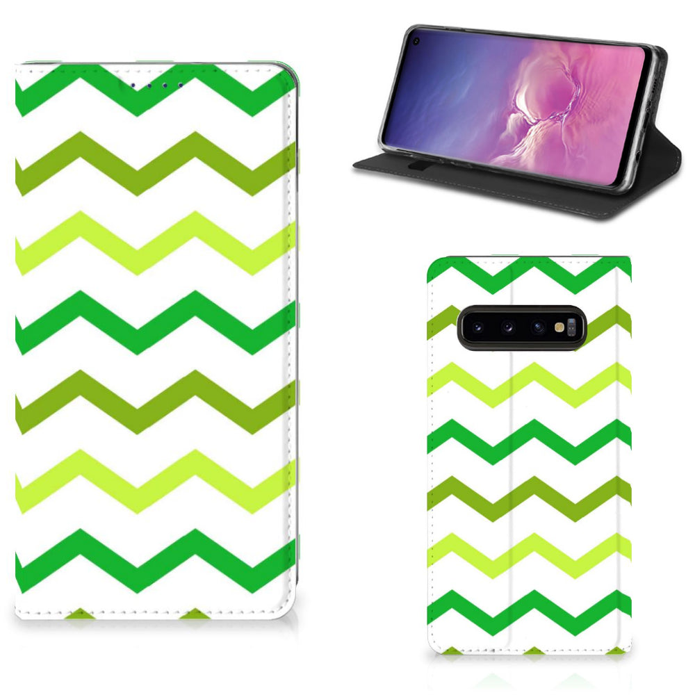 Samsung Galaxy S10 Hoesje met Magneet Zigzag Groen
