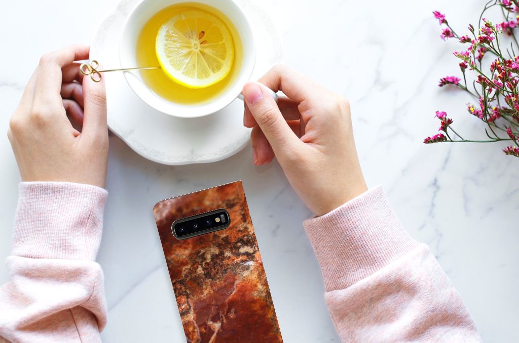 Samsung Galaxy S10 Standcase Marmer Bruin