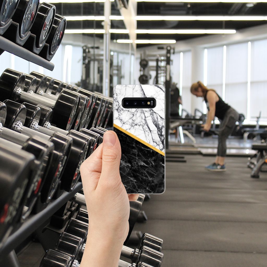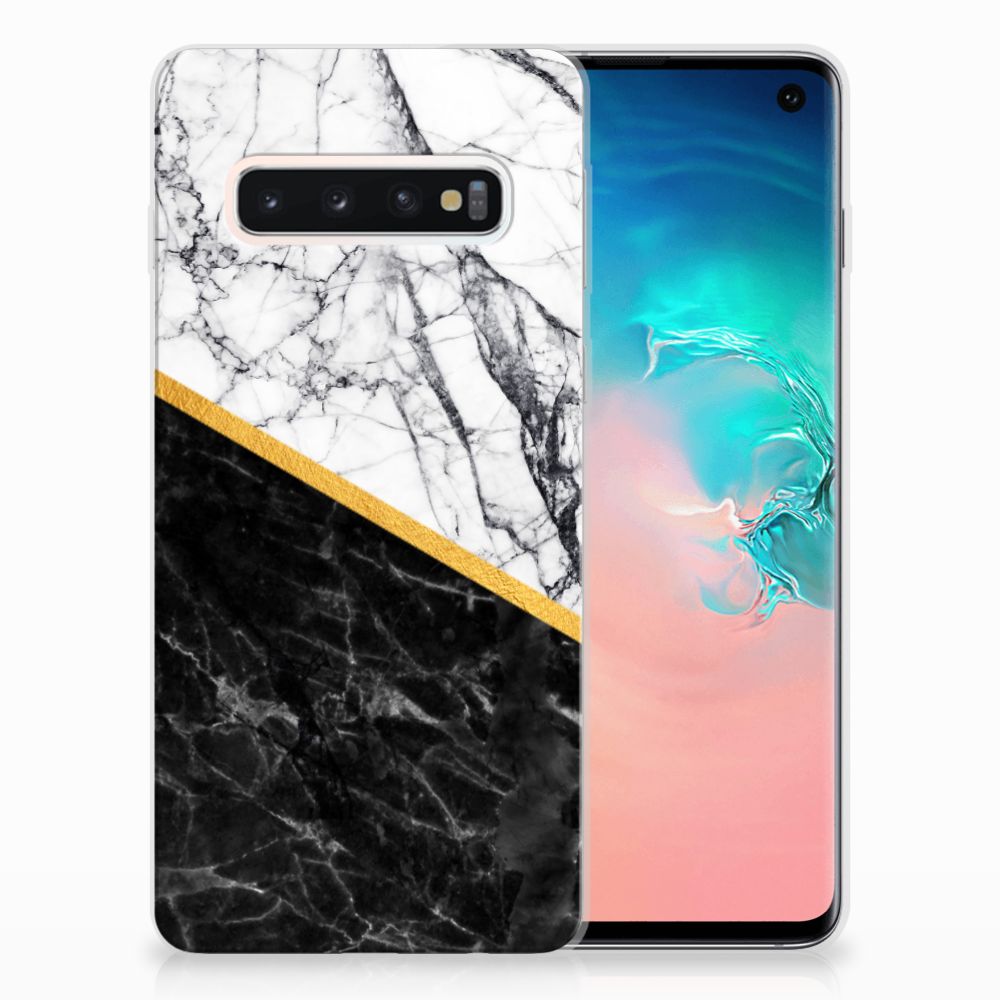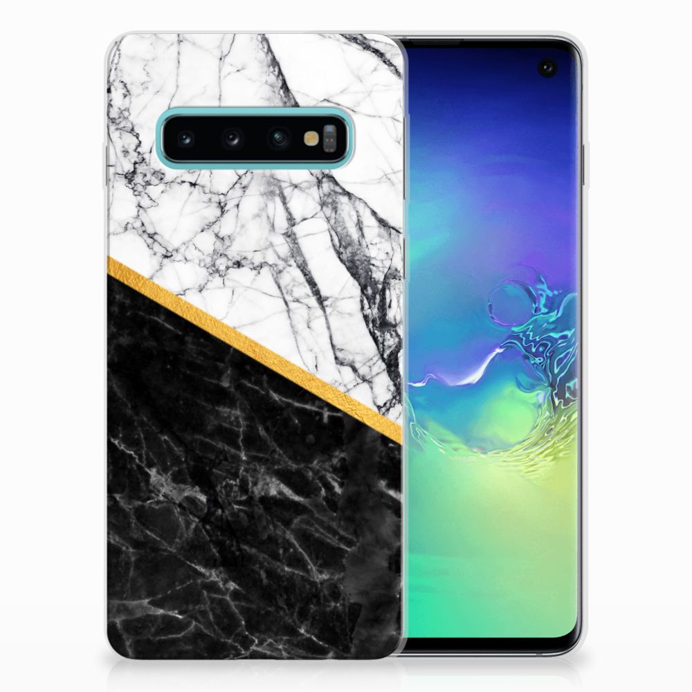 Samsung Galaxy S10 TPU Siliconen Hoesje Marmer Wit Zwart - Origineel Cadeau Man