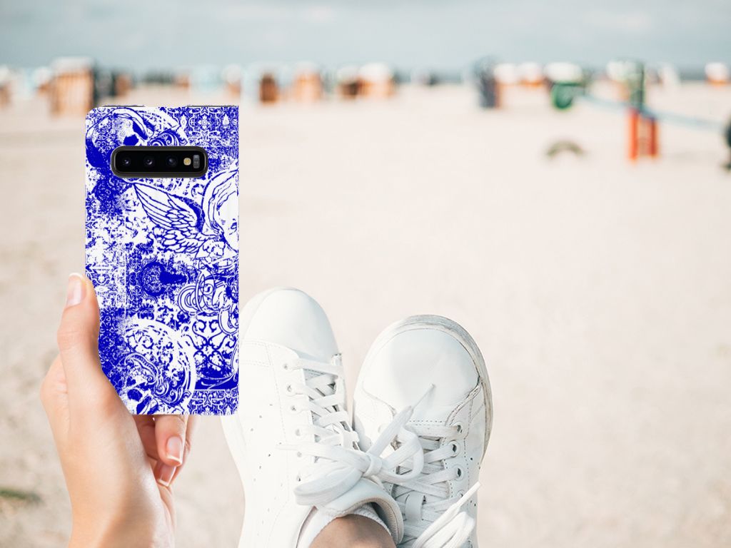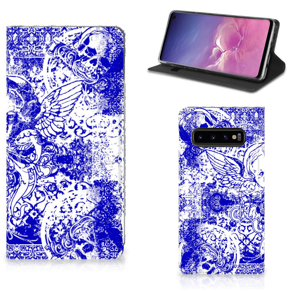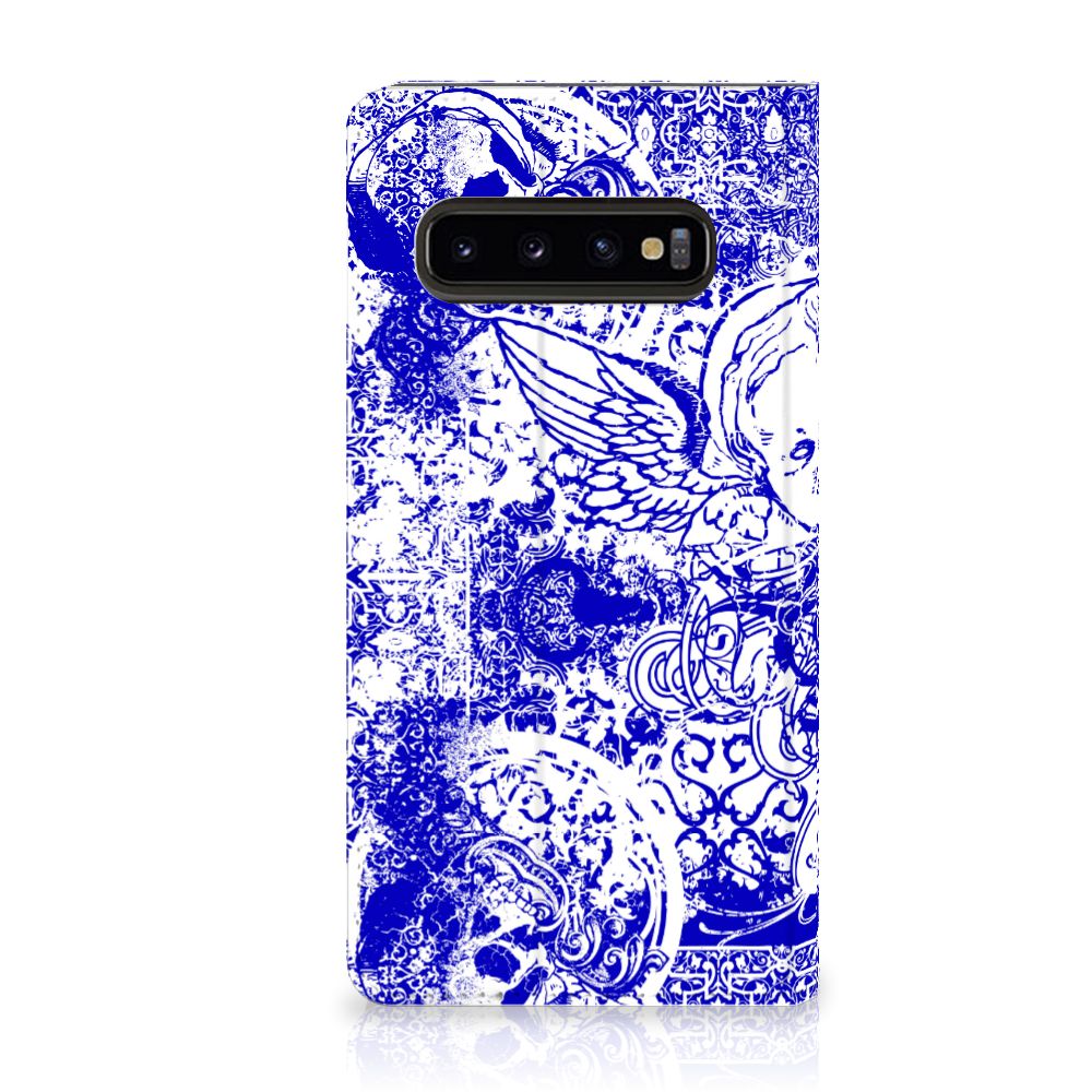 Mobiel BookCase Samsung Galaxy S10 Angel Skull Blauw