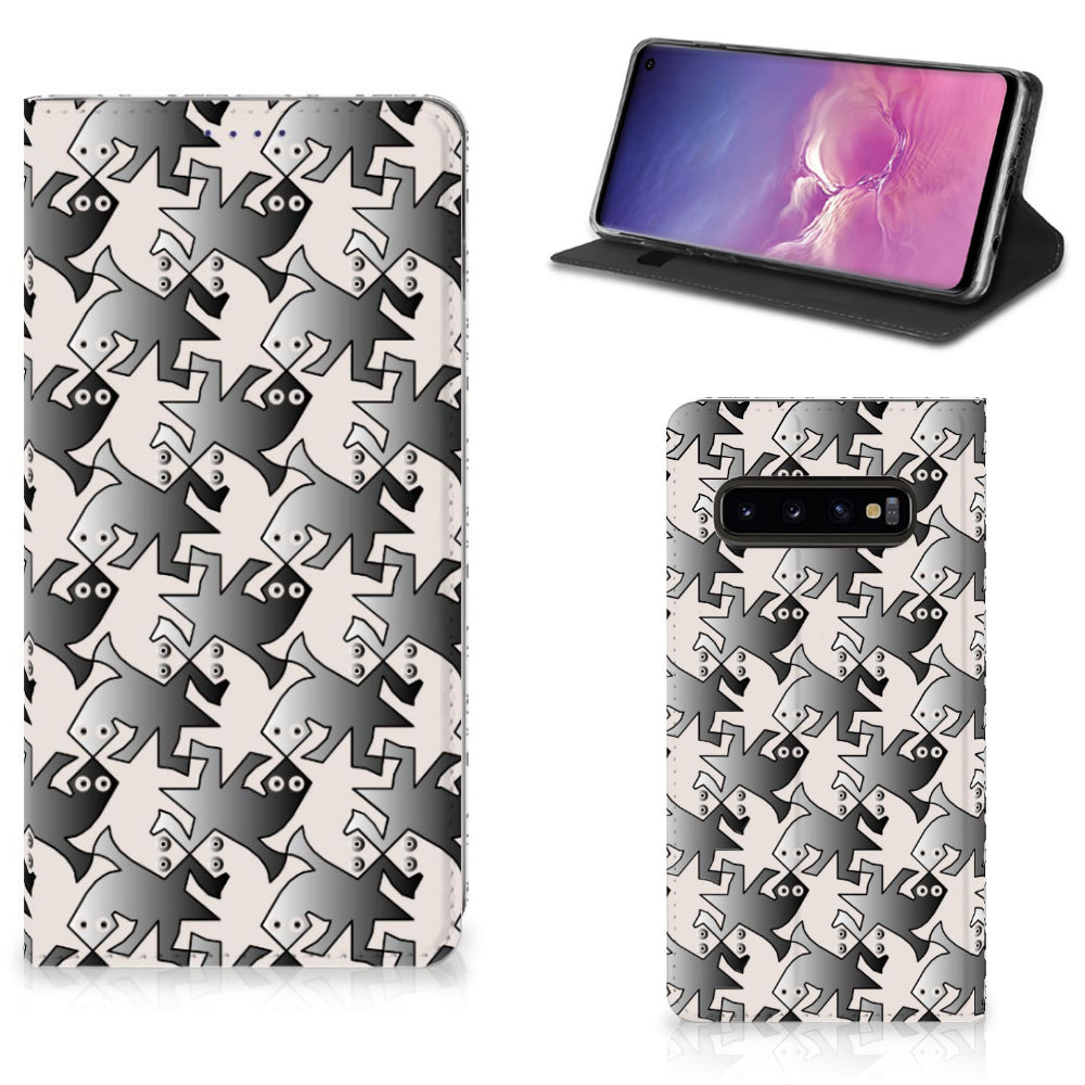 Samsung Galaxy S10 Bookcase Marmer Wit Zwart - Origineel Cadeau Man