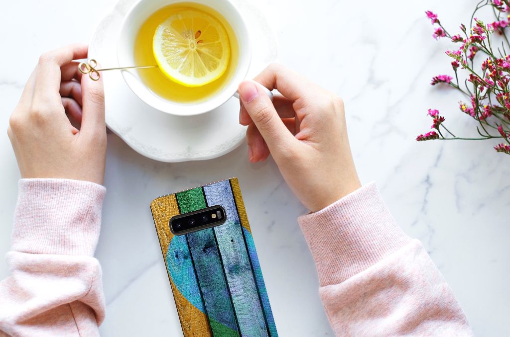 Samsung Galaxy S10 Book Style Case Wood Blue