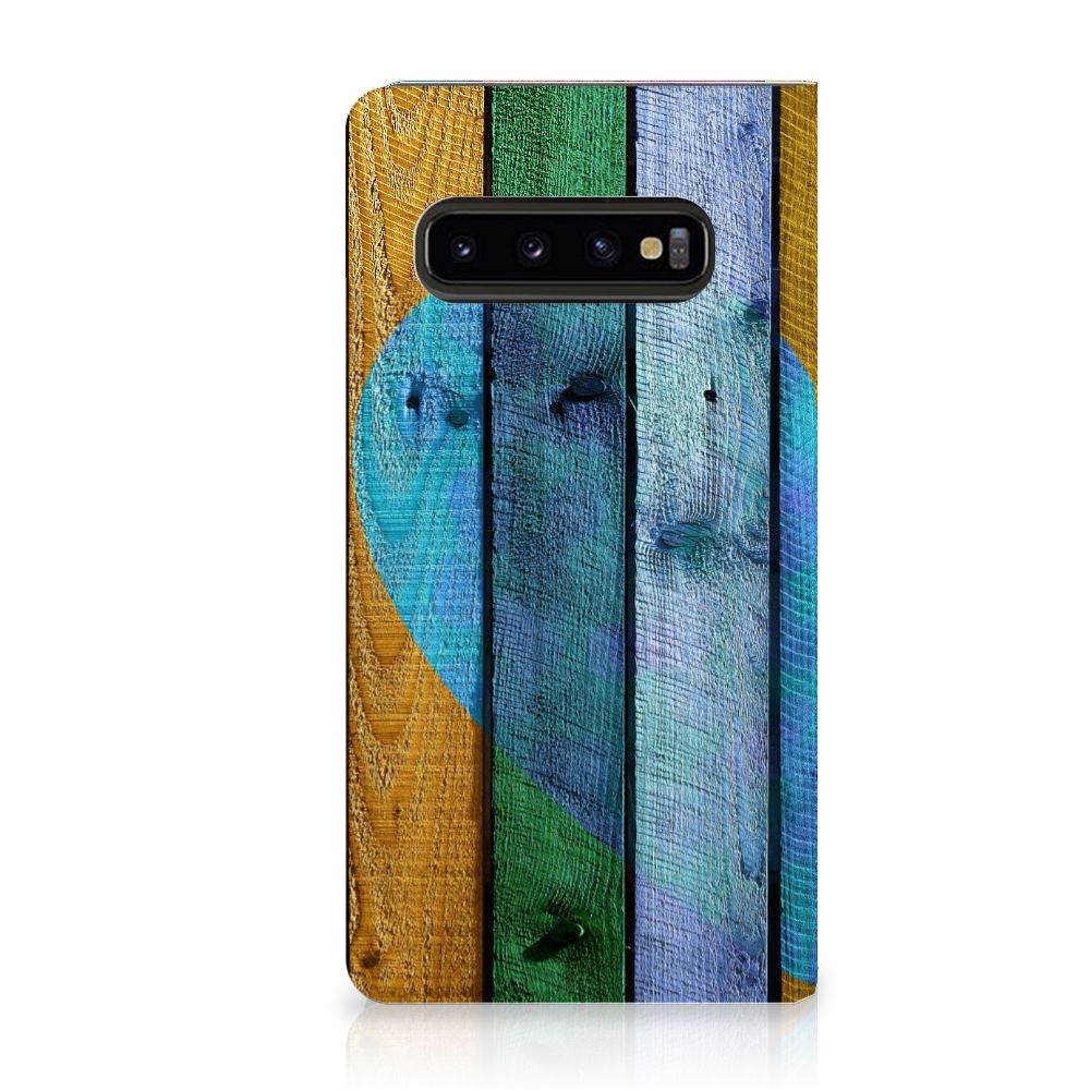 Samsung Galaxy S10 Book Wallet Case Wood Heart - Cadeau voor je Vriend