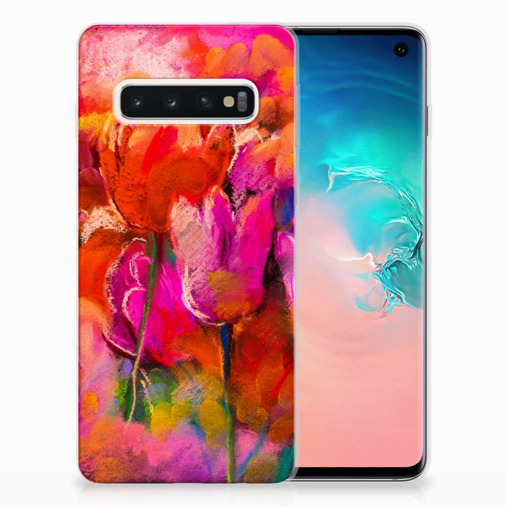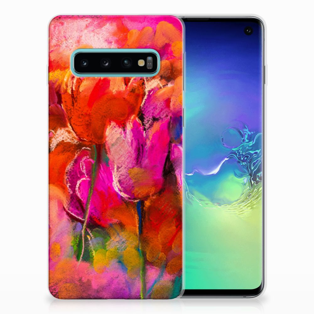 Samsung Galaxy S10 TPU Hoesje Pauw met Bloemen