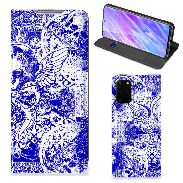 Mobiel BookCase Samsung Galaxy S20 Plus Angel Skull Blauw