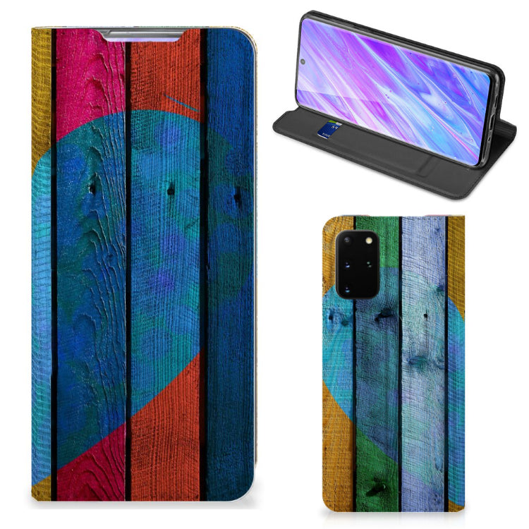 Samsung Galaxy S20 Plus Book Wallet Case Wood Heart - Cadeau voor je Vriend