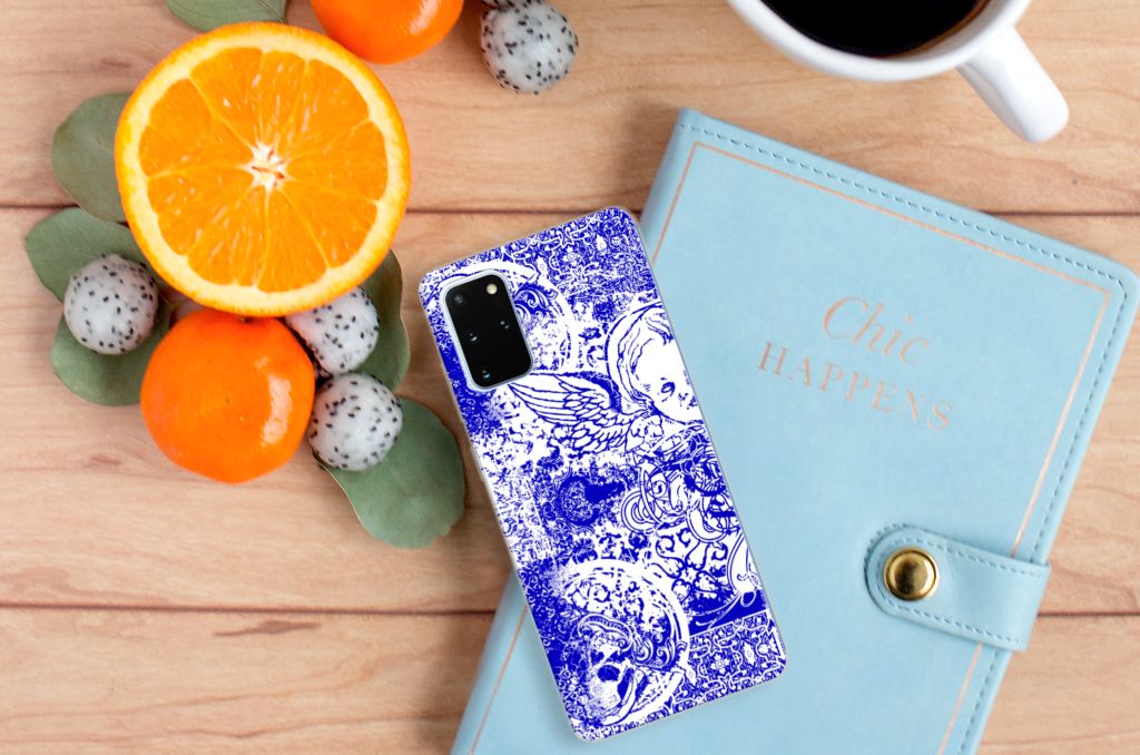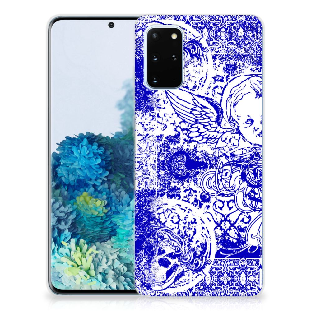 Silicone Back Case Samsung Galaxy S20 Plus Angel Skull Blauw