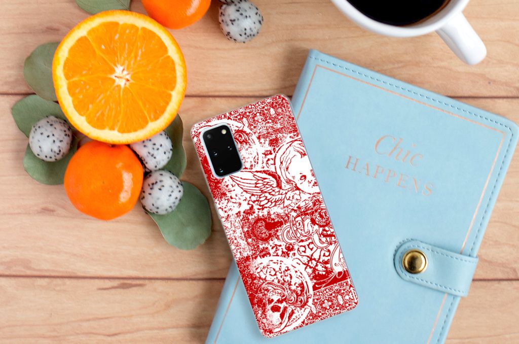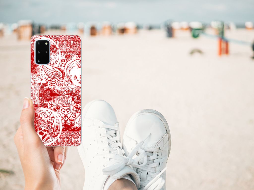 Silicone Back Case Samsung Galaxy S20 Plus Angel Skull Rood
