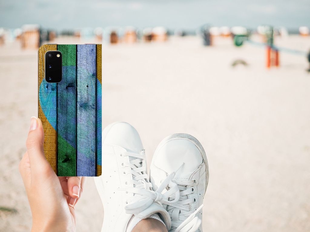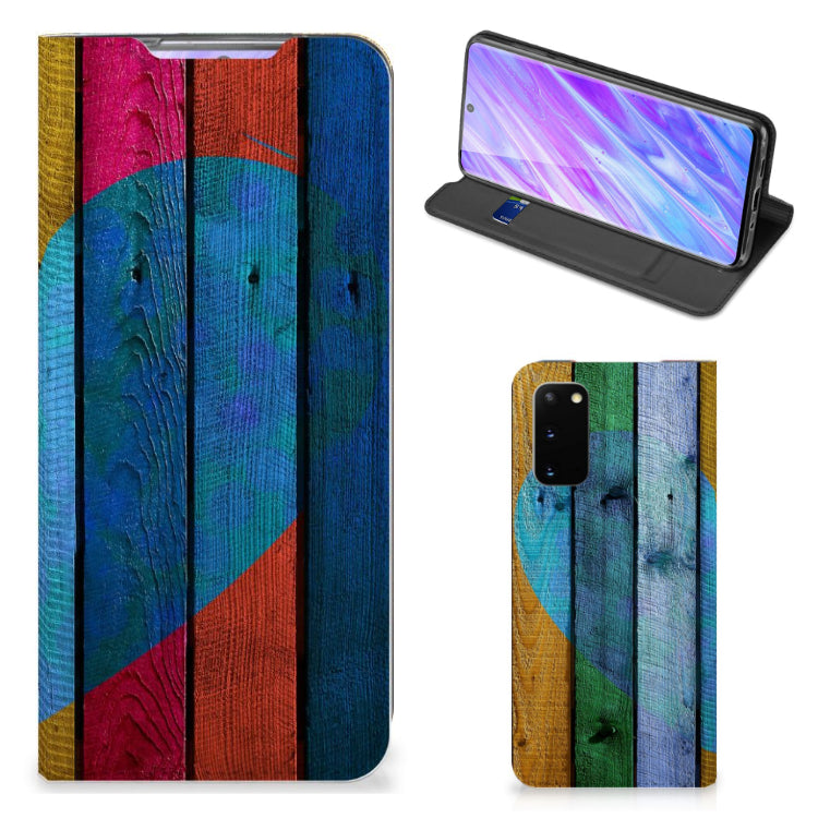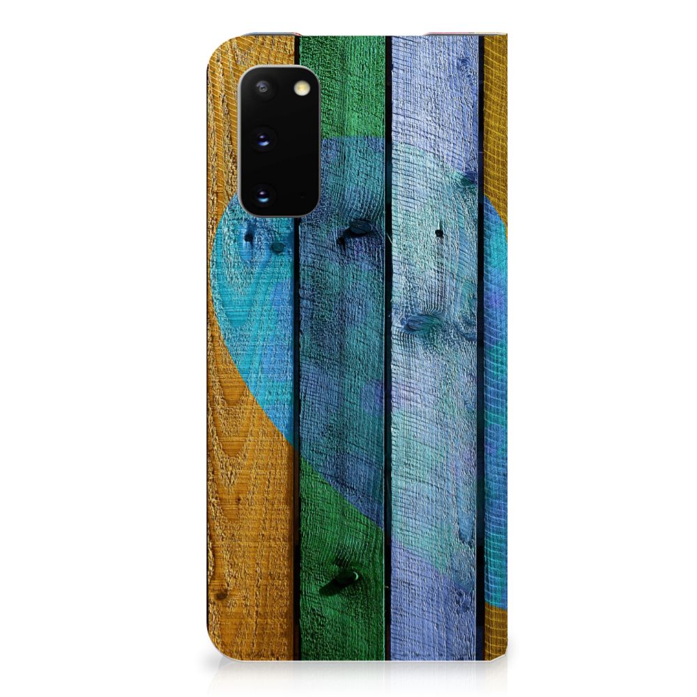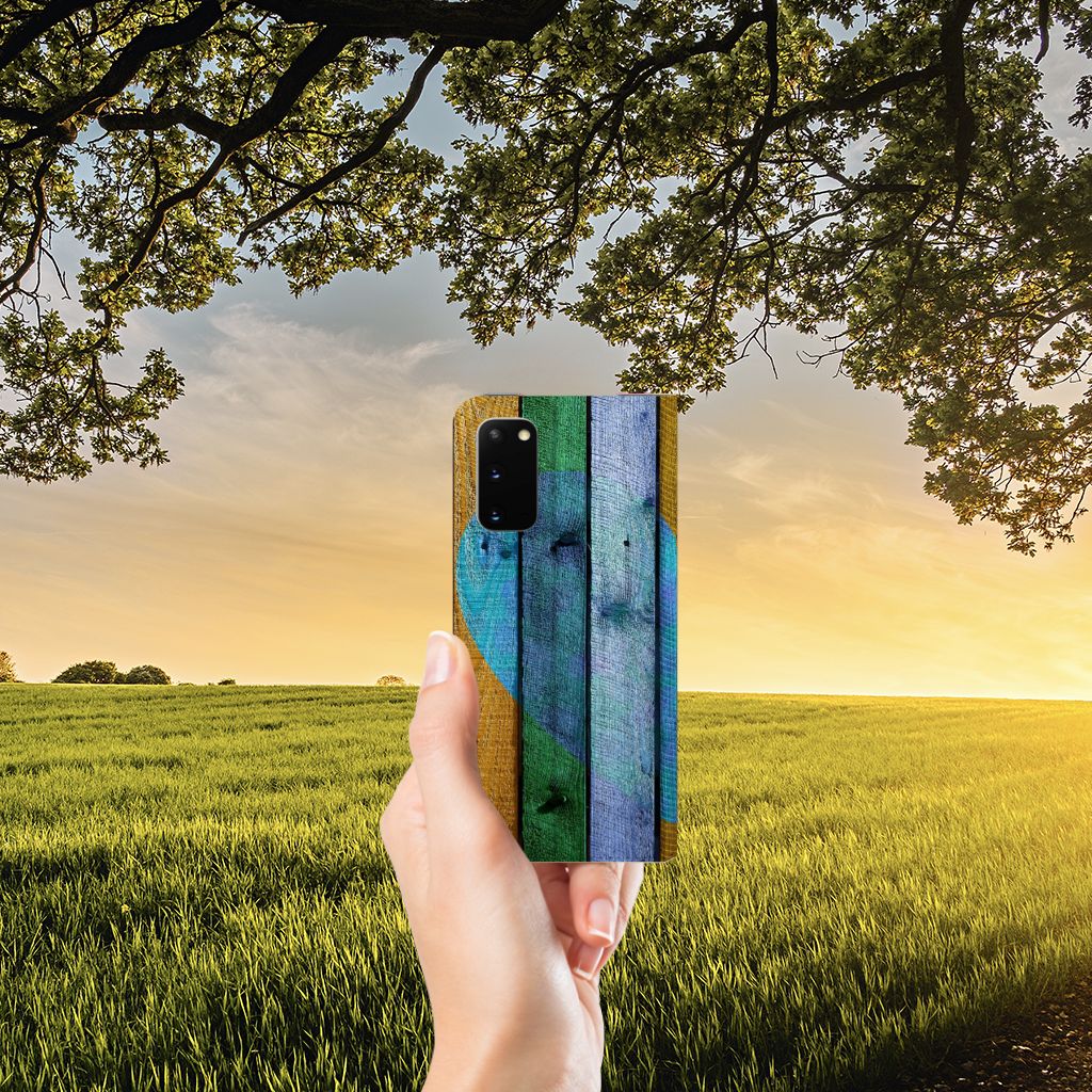 Samsung Galaxy S20 Book Wallet Case Wood Heart - Cadeau voor je Vriend
