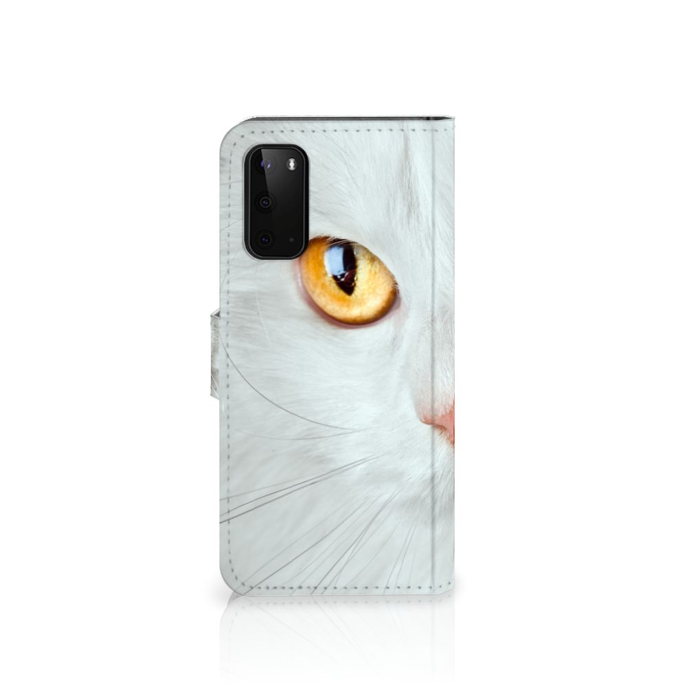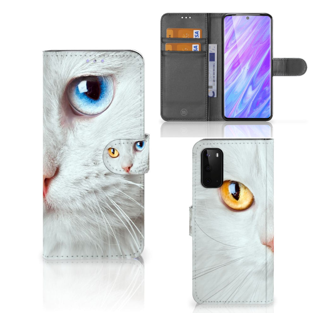 Samsung Galaxy S20 Telefoonhoesje met Pasjes Witte Kat