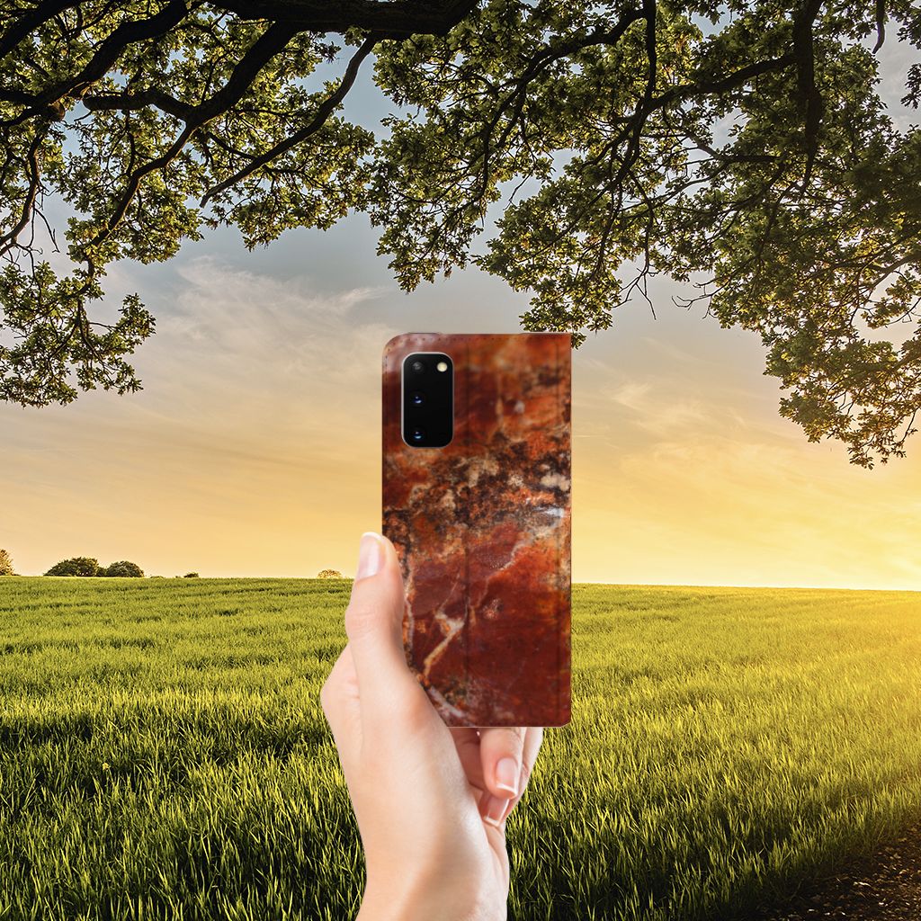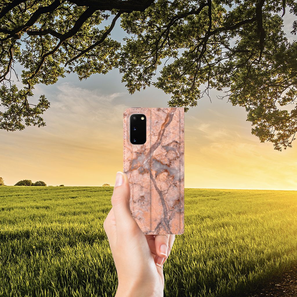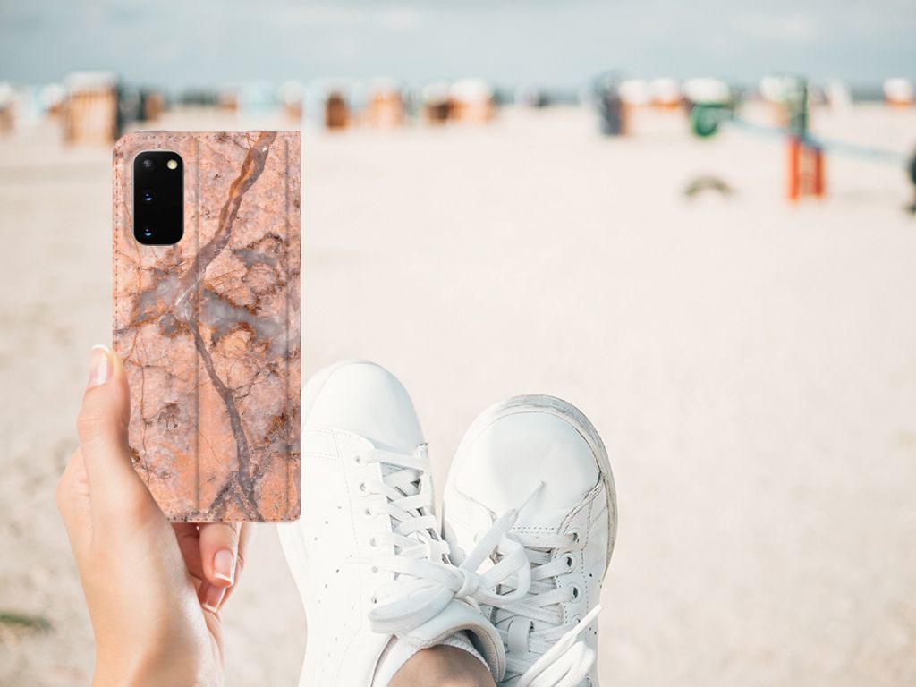 Samsung Galaxy S20 Standcase Marmer Oranje