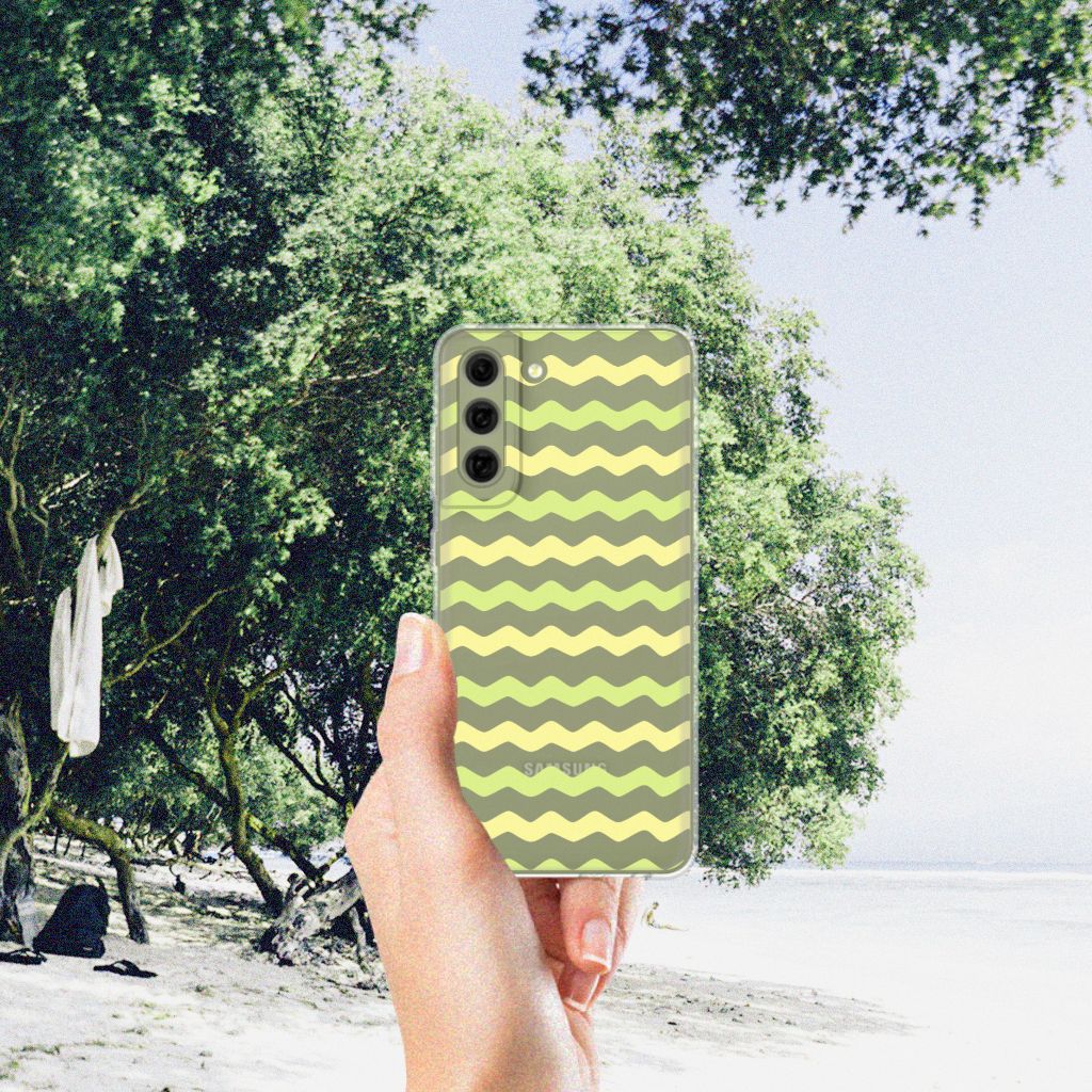 Samsung Galaxy S21 FE Doorzichtige Silicone Hoesje Zigzag Groen
