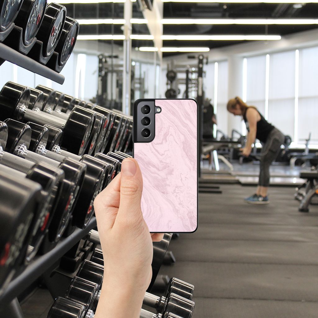 Samsung Galaxy S21FE Marmeren Print Telefoonhoesje Marble Pink - Origineel Cadeau Vriendin