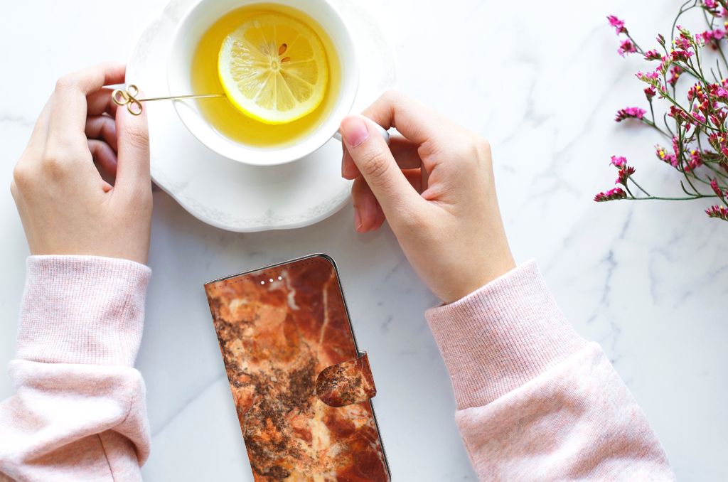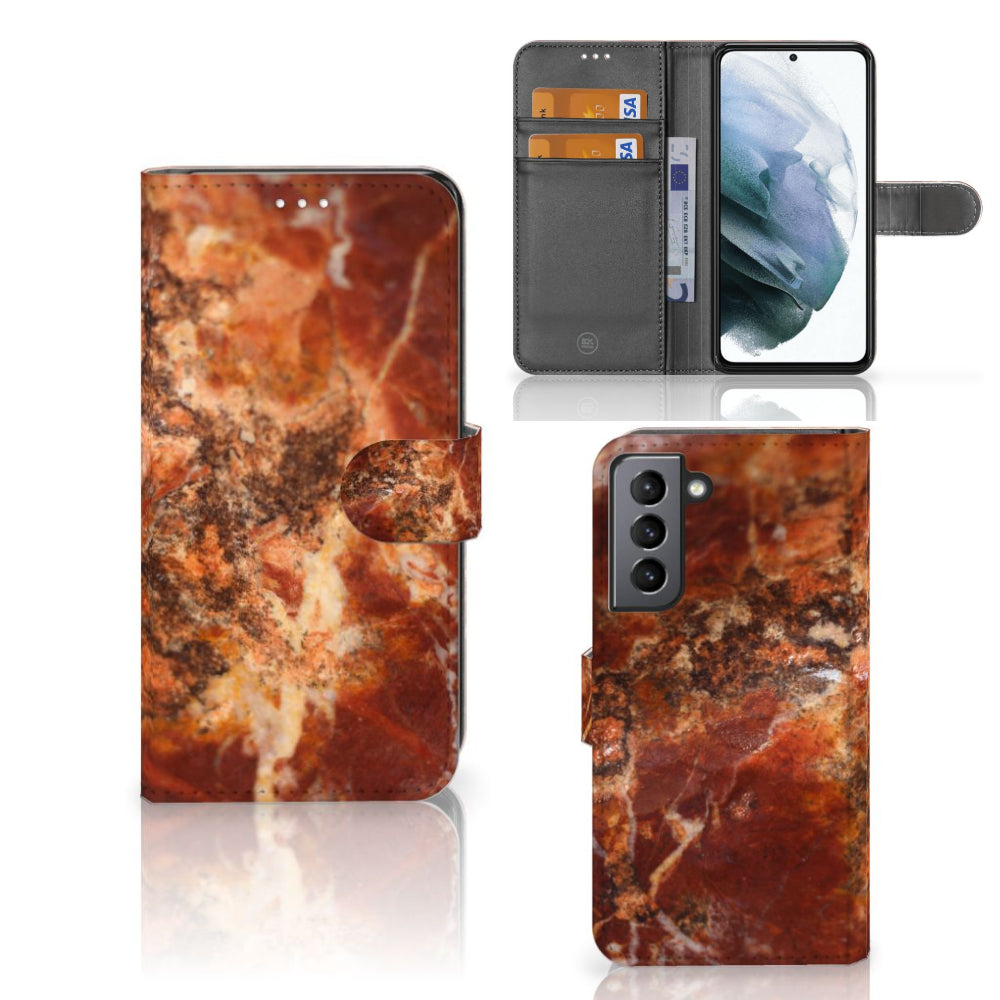 Samsung Galaxy S21 FE Bookcase Marmer Bruin