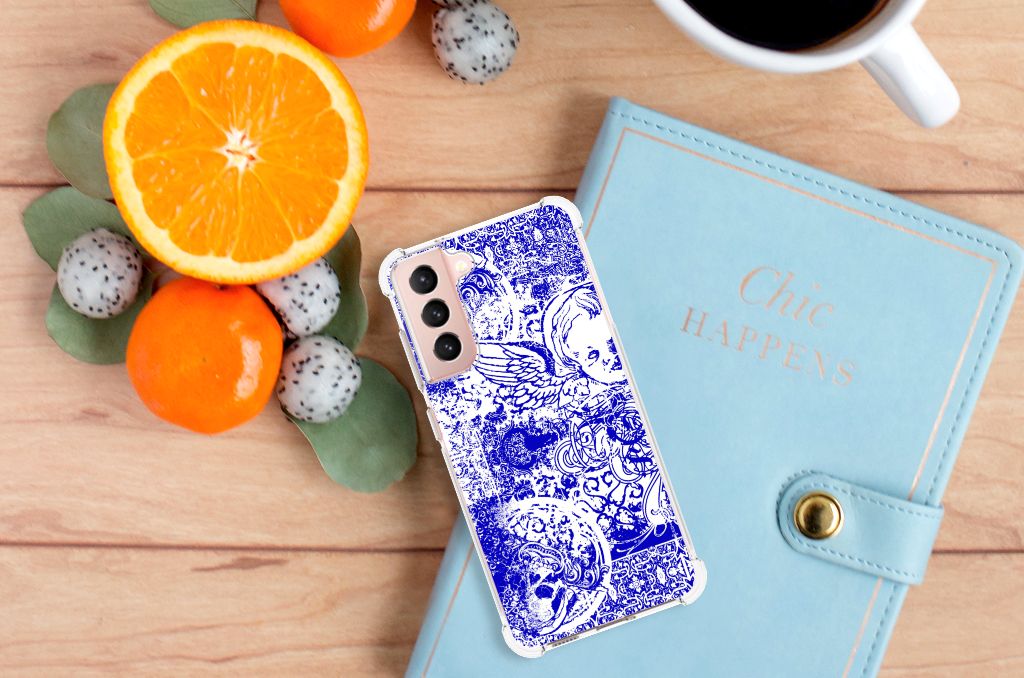 Extreme Case Samsung Galaxy S21 FE Angel Skull Blauw