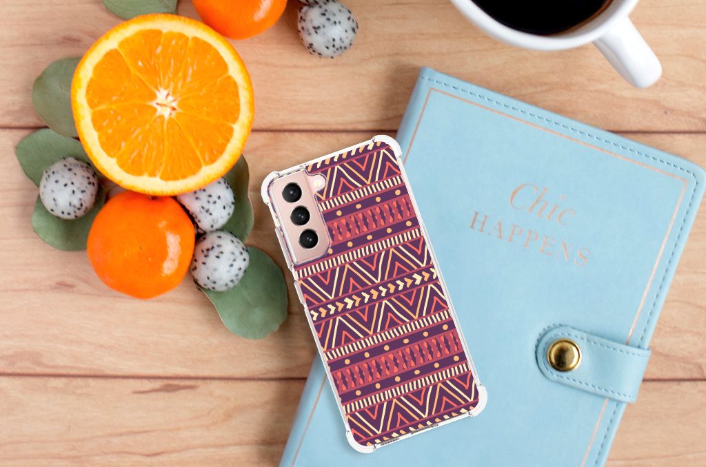 Samsung Galaxy S21 FE Doorzichtige Silicone Hoesje Aztec Paars