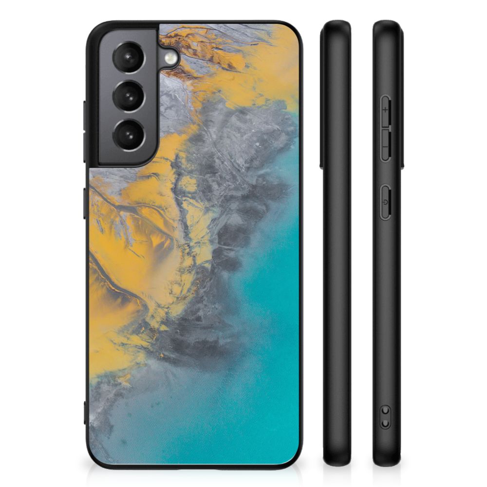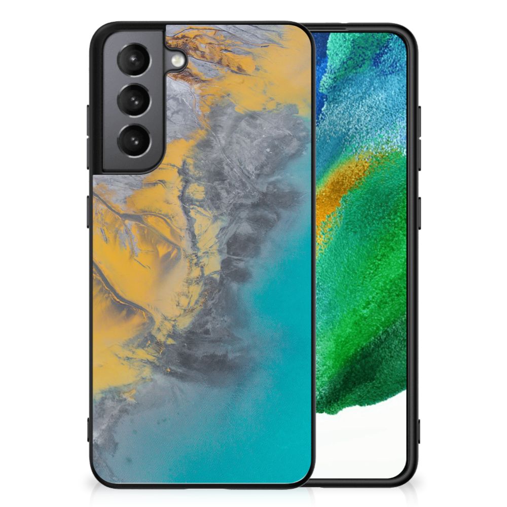 Samsung Galaxy S21FE Marmeren Print Telefoonhoesje Marble Blue Gold