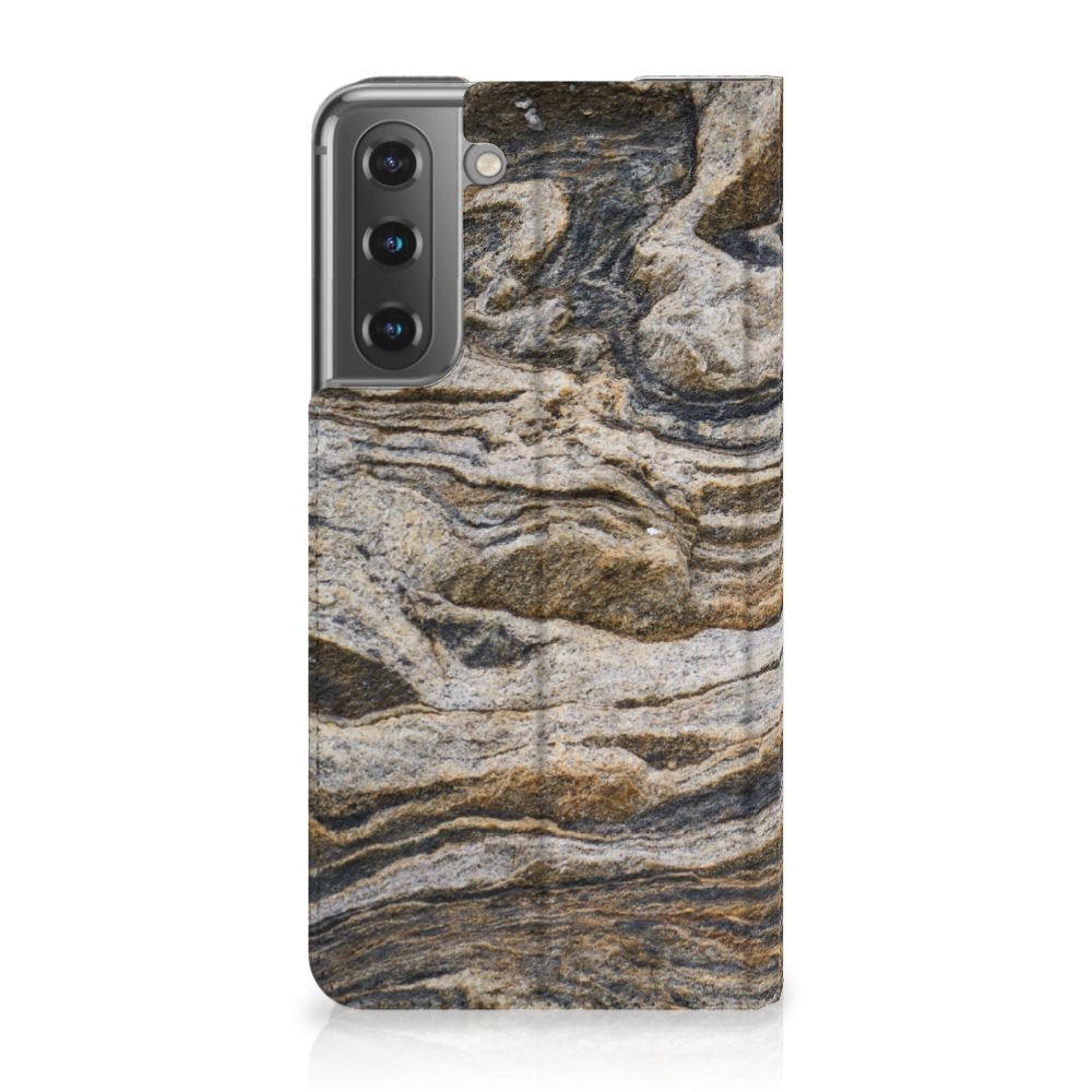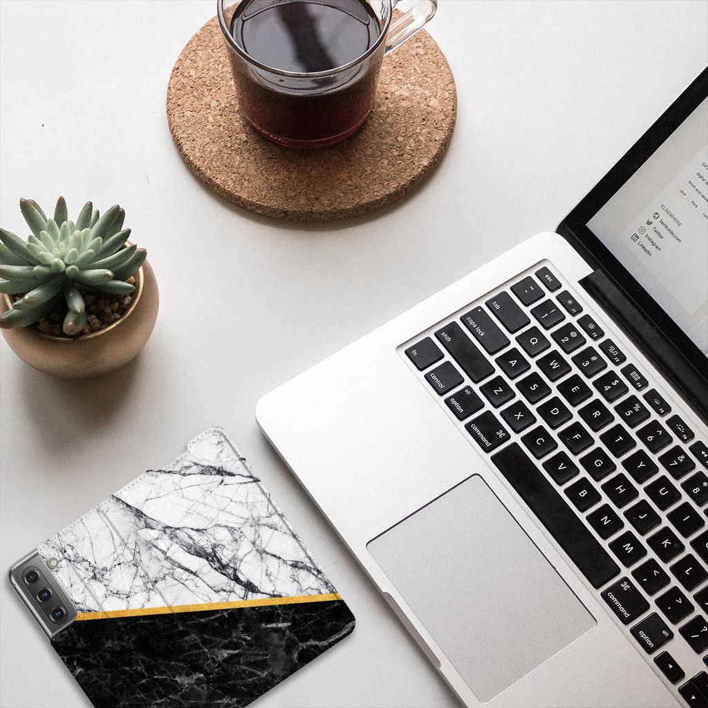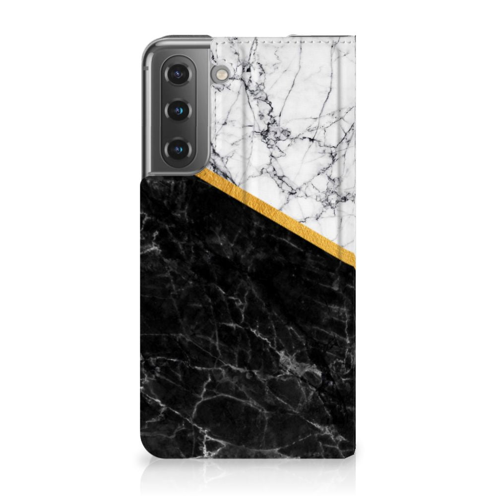 Samsung Galaxy S21 FE Standcase Marmer Wit Zwart - Origineel Cadeau Man