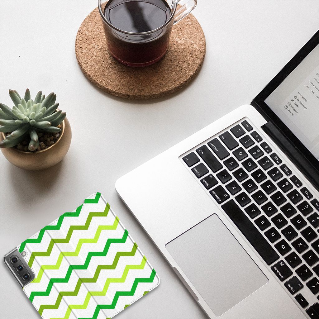 Samsung Galaxy S21 FE Hoesje met Magneet Zigzag Groen