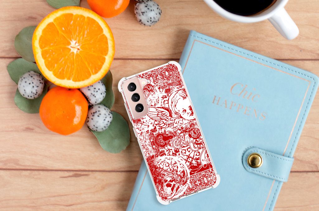 Extreme Case Samsung Galaxy S21 FE Angel Skull Rood
