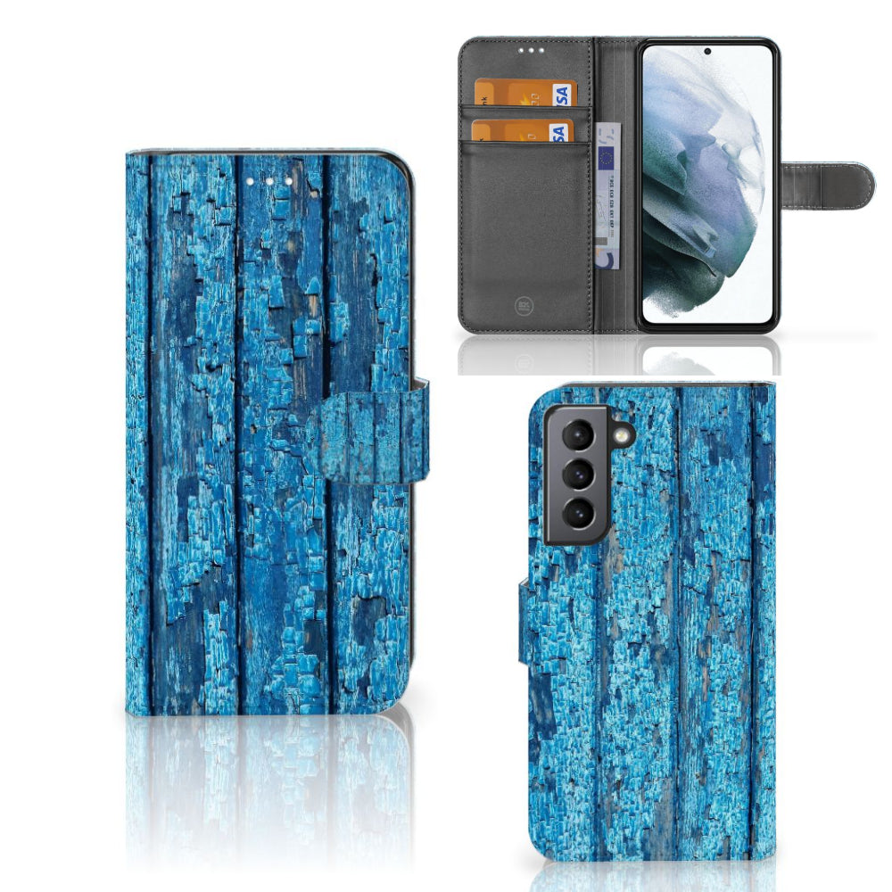Samsung Galaxy S21 FE Book Style Case Wood Blue