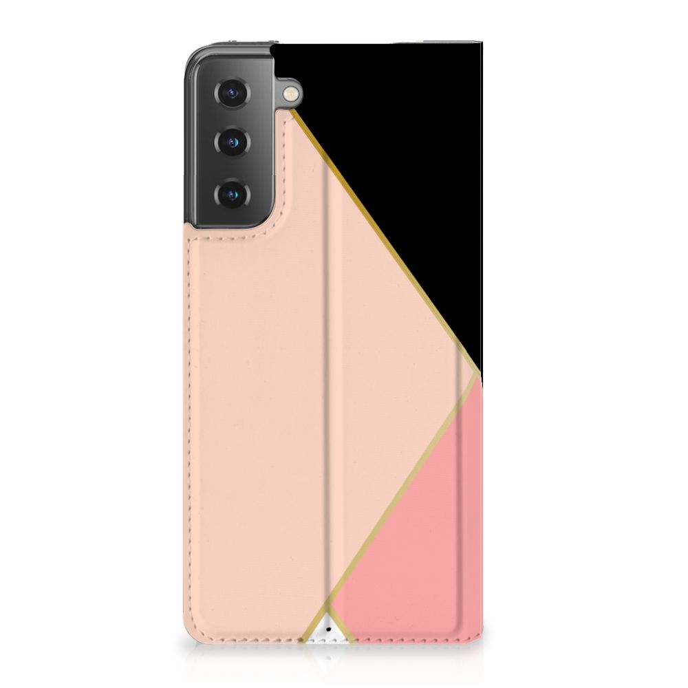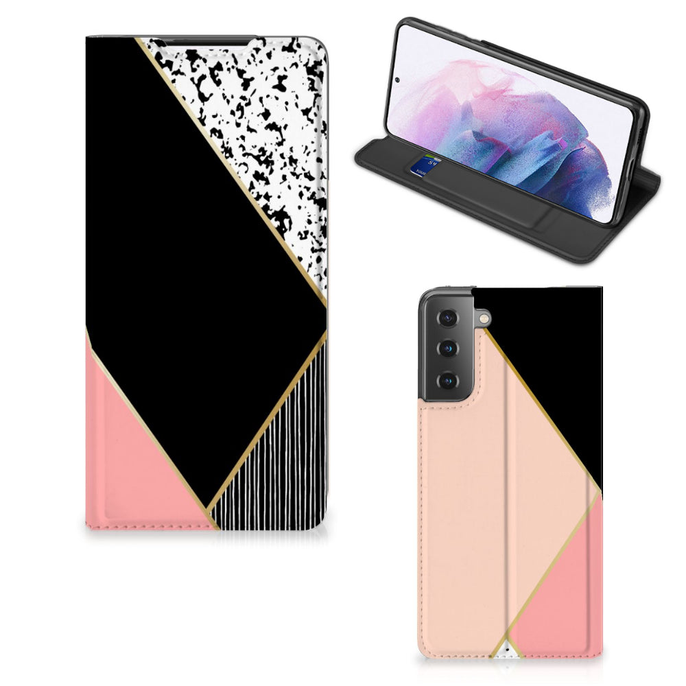 Samsung Galaxy S21 Plus Stand Case Zwart Roze Vormen