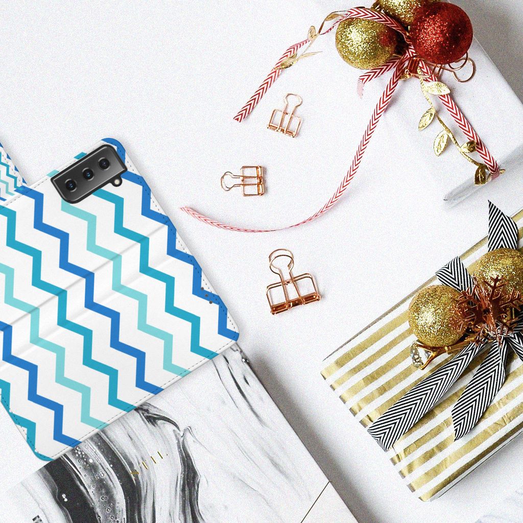 Samsung Galaxy S21 Plus Telefoon Hoesje Zigzag Blauw