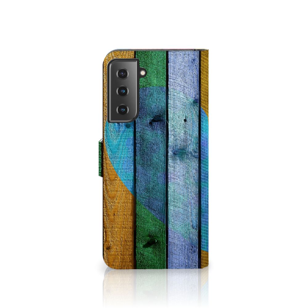 Samsung Galaxy S21 Plus Book Style Case Wood Heart - Cadeau voor je Vriend