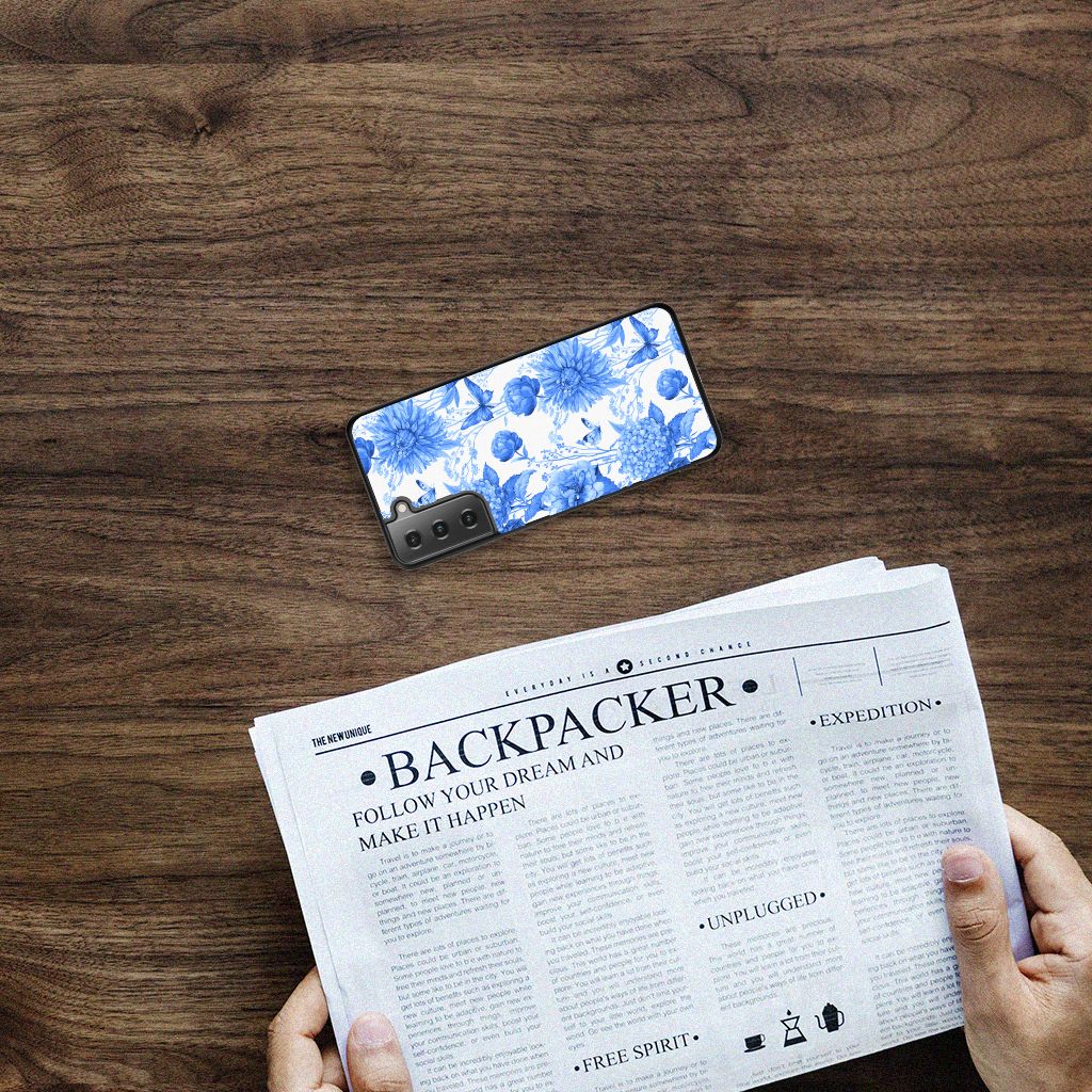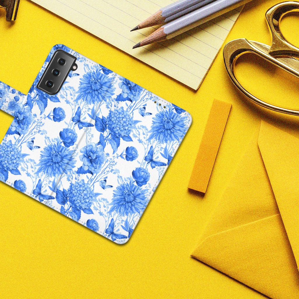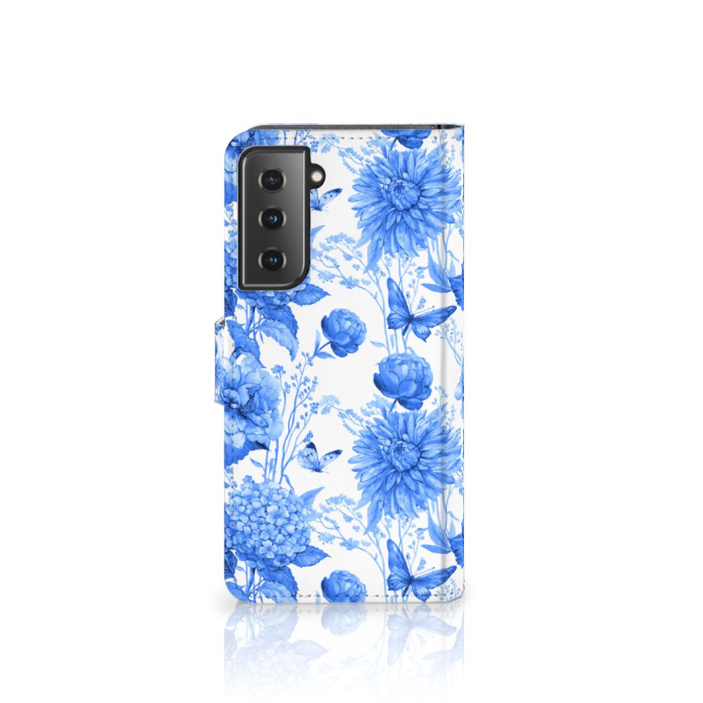 Bloemen Hoesje voor Samsung Galaxy S21 Flowers Blue