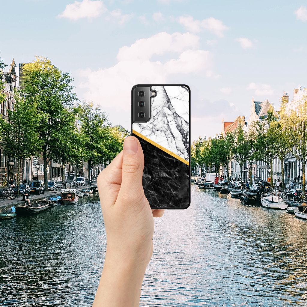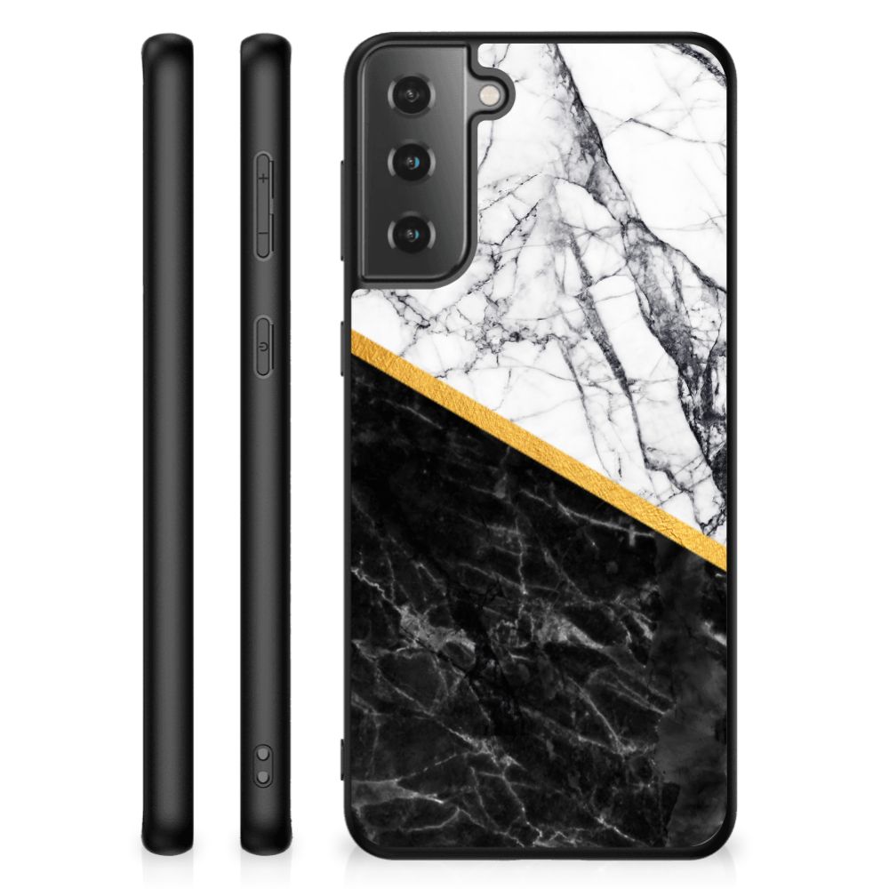 Samsung Galaxy S21 Marmeren Print Telefoonhoesje Marmer Wit Zwart - Origineel Cadeau Man