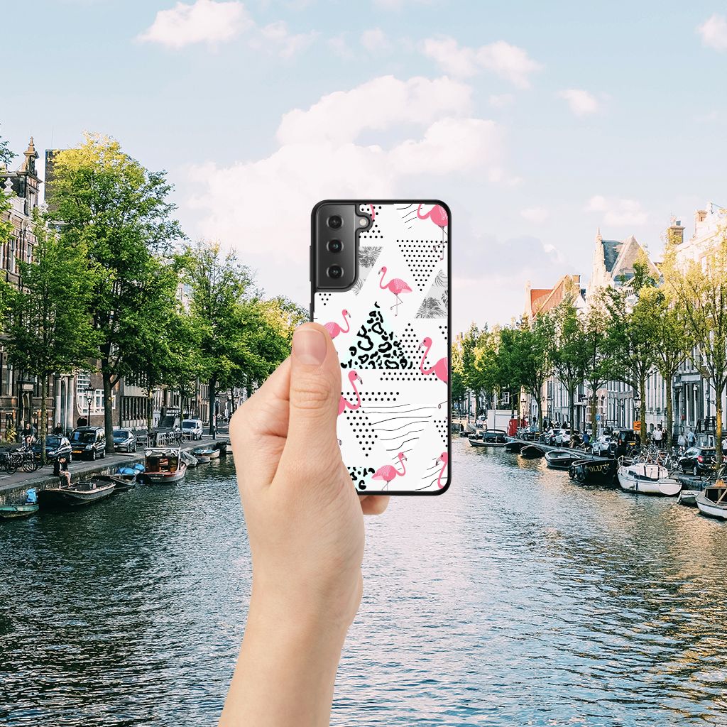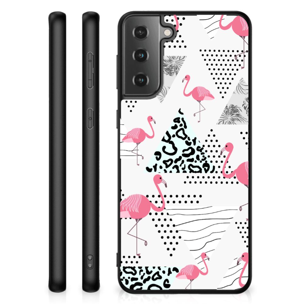 Samsung Galaxy S21 Dierenprint Telefoonhoesje Flamingo Triangle