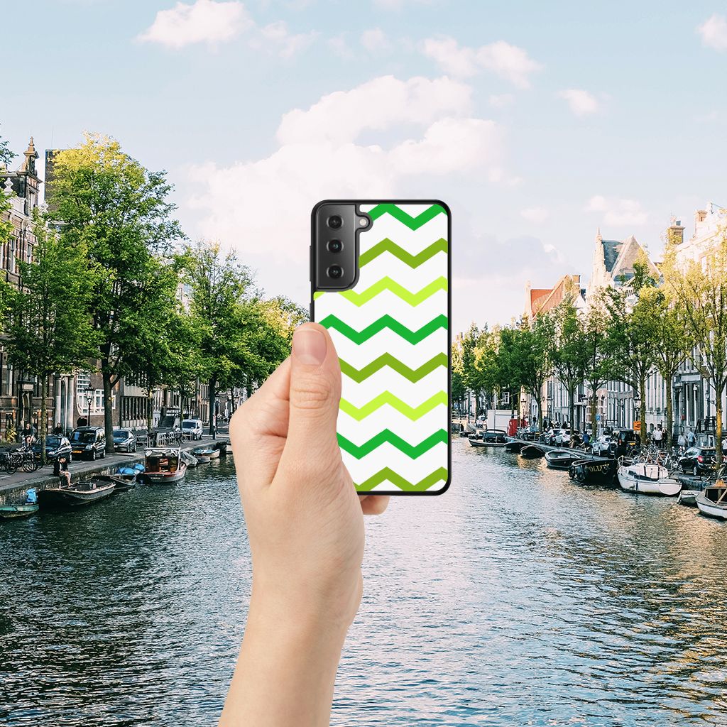 Samsung Galaxy S21 Back Case Zigzag Groen